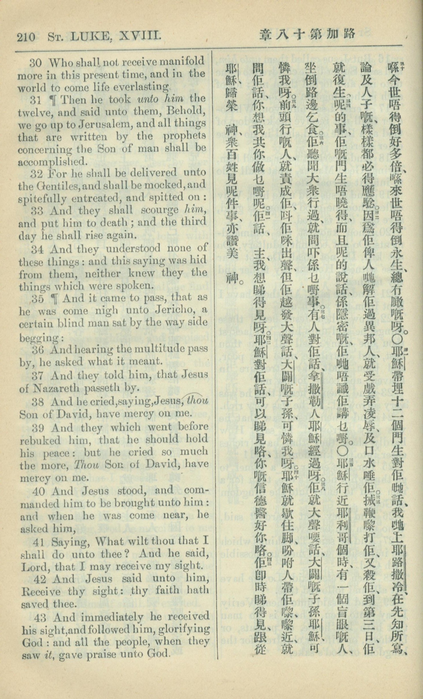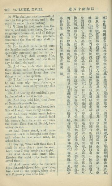 1909年中西字新约全书 路加福音 18 章 30 节到 18 章 43 节
