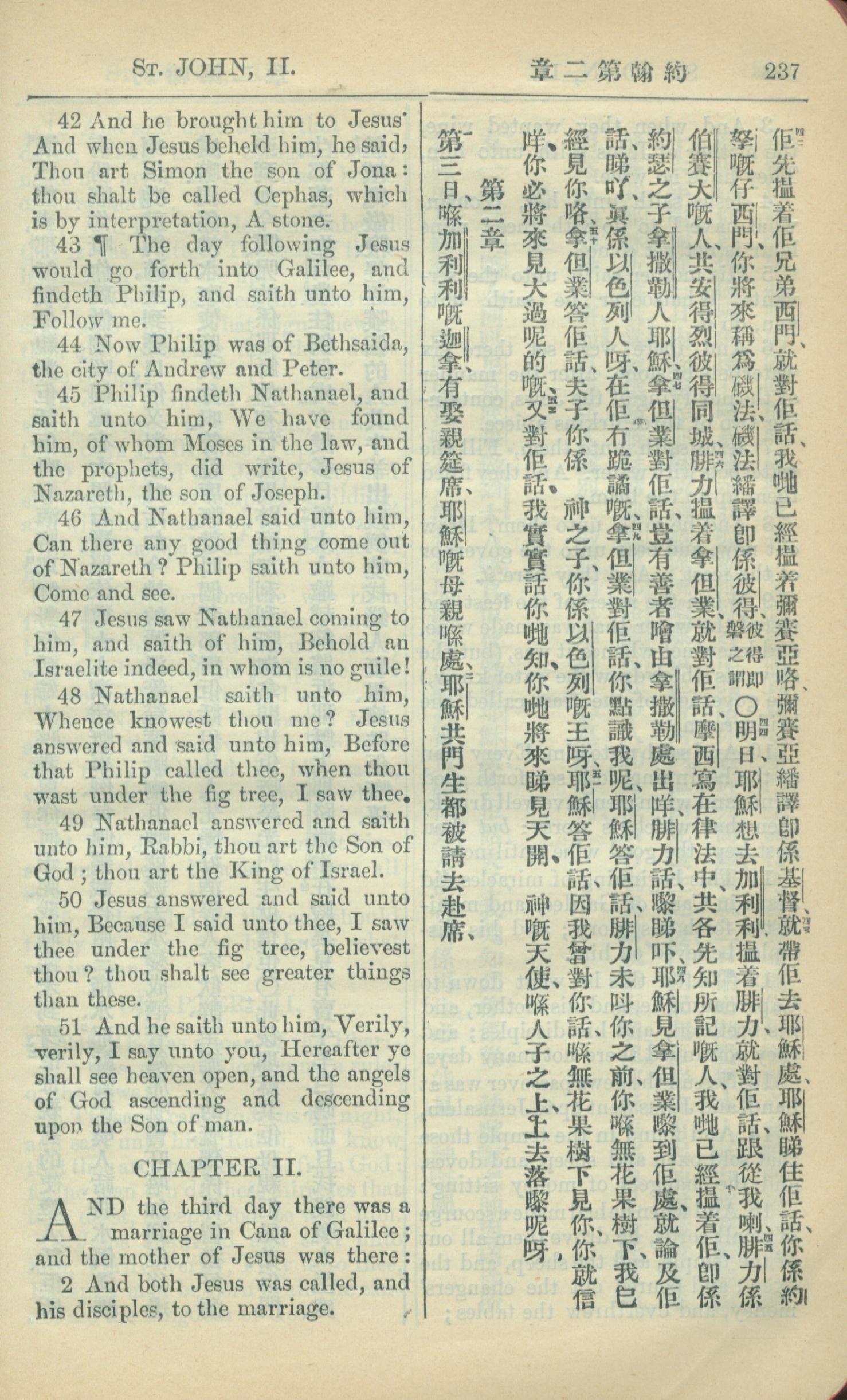 1909年中西字新约全书 约翰福音 1 章 42 节到 2 章 2 节