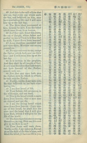1909年中西字新约全书 约翰福音 6 章 40 节到 6 章 53 节