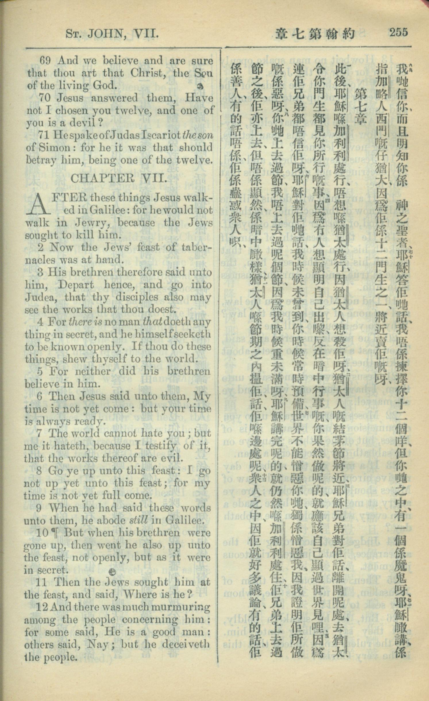 1909年中西字新约全书 约翰福音 6 章 69 节到 7 章 12 节