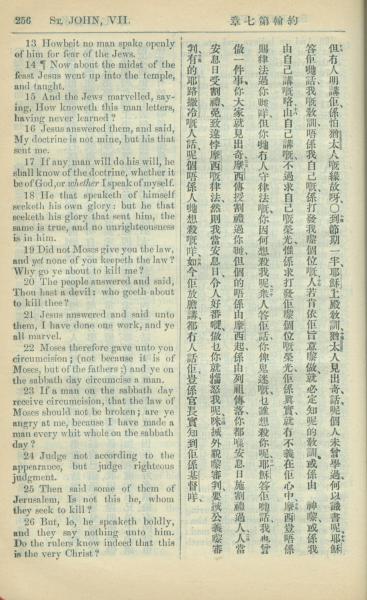 1909年中西字新约全书 约翰福音 7 章 13 节到 7 章 26 节