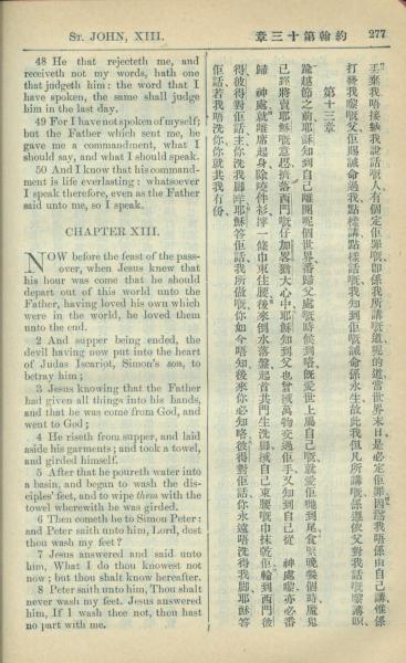 1909年中西字新约全书 约翰福音 12 章 48 节到 13 章 8 节