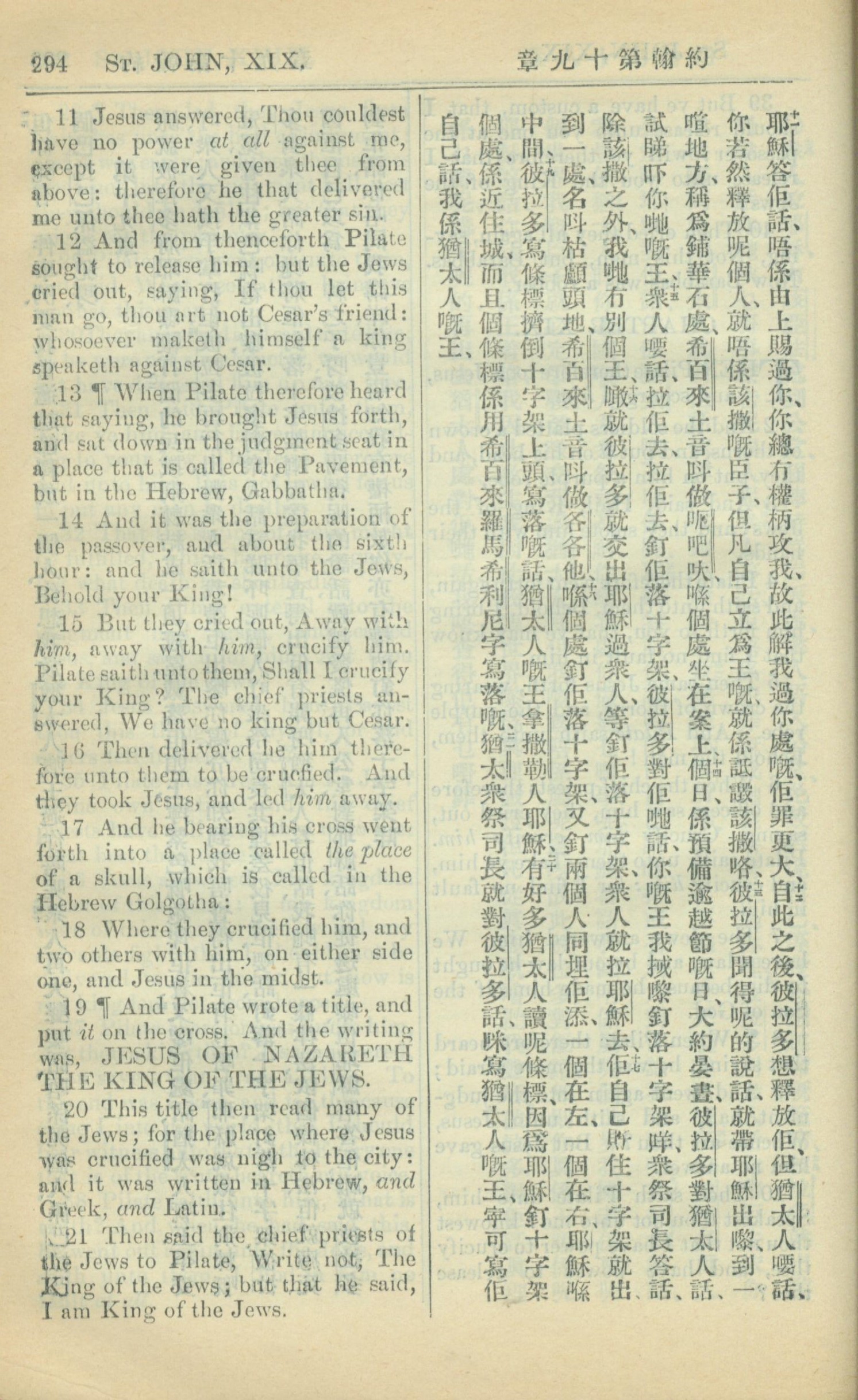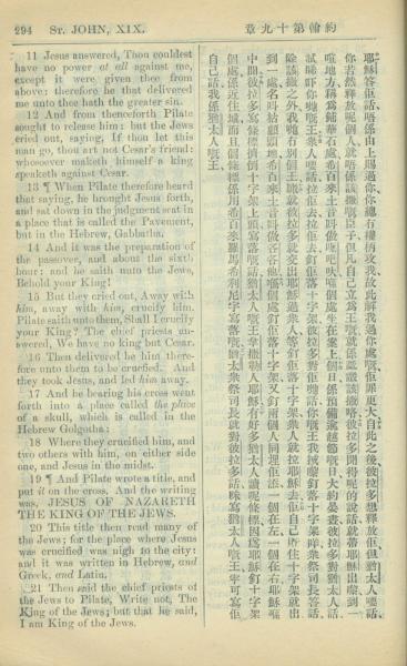 1909年中西字新约全书 约翰福音 19 章 11 节到 19 章 21 节