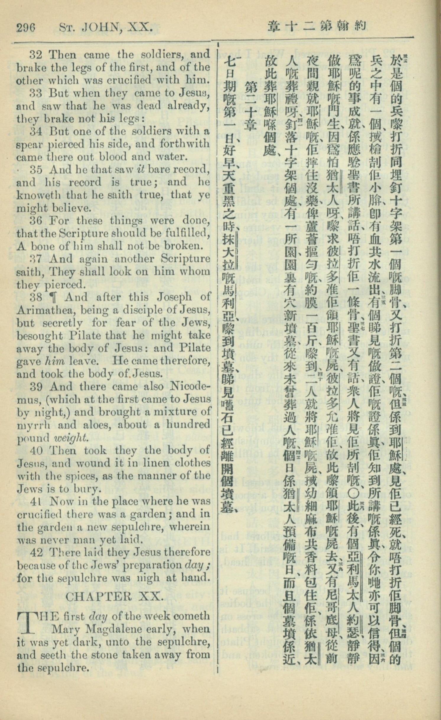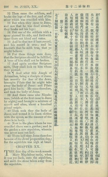 1909年中西字新约全书 约翰福音 19 章 32 节到 20 章 1 节