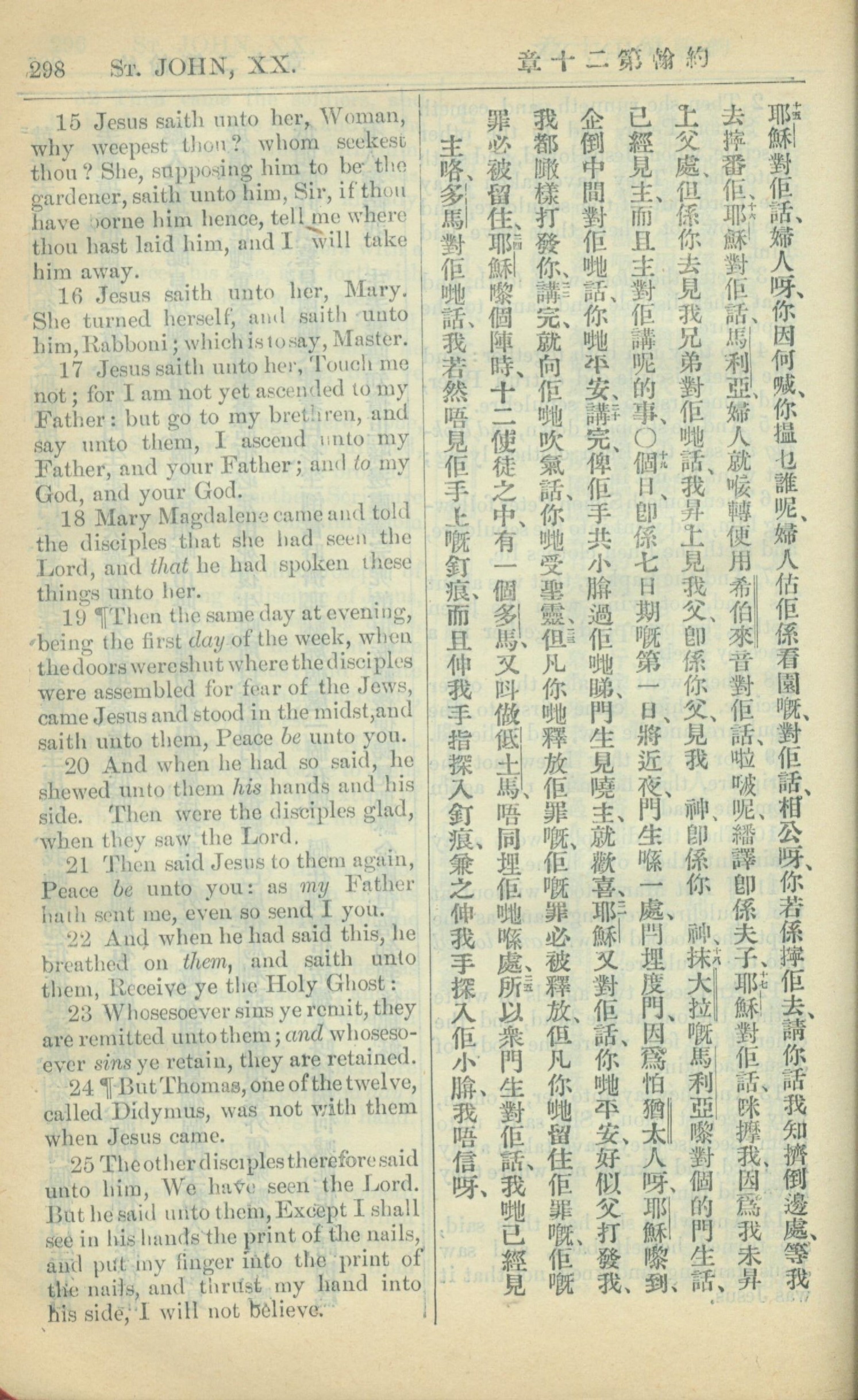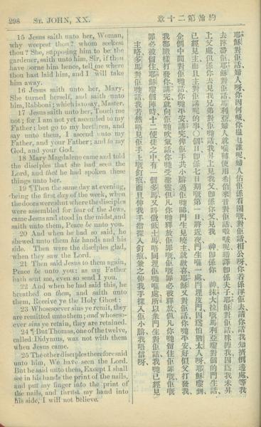 1909年中西字新约全书 约翰福音 20 章 15 节到 20 章 25 节