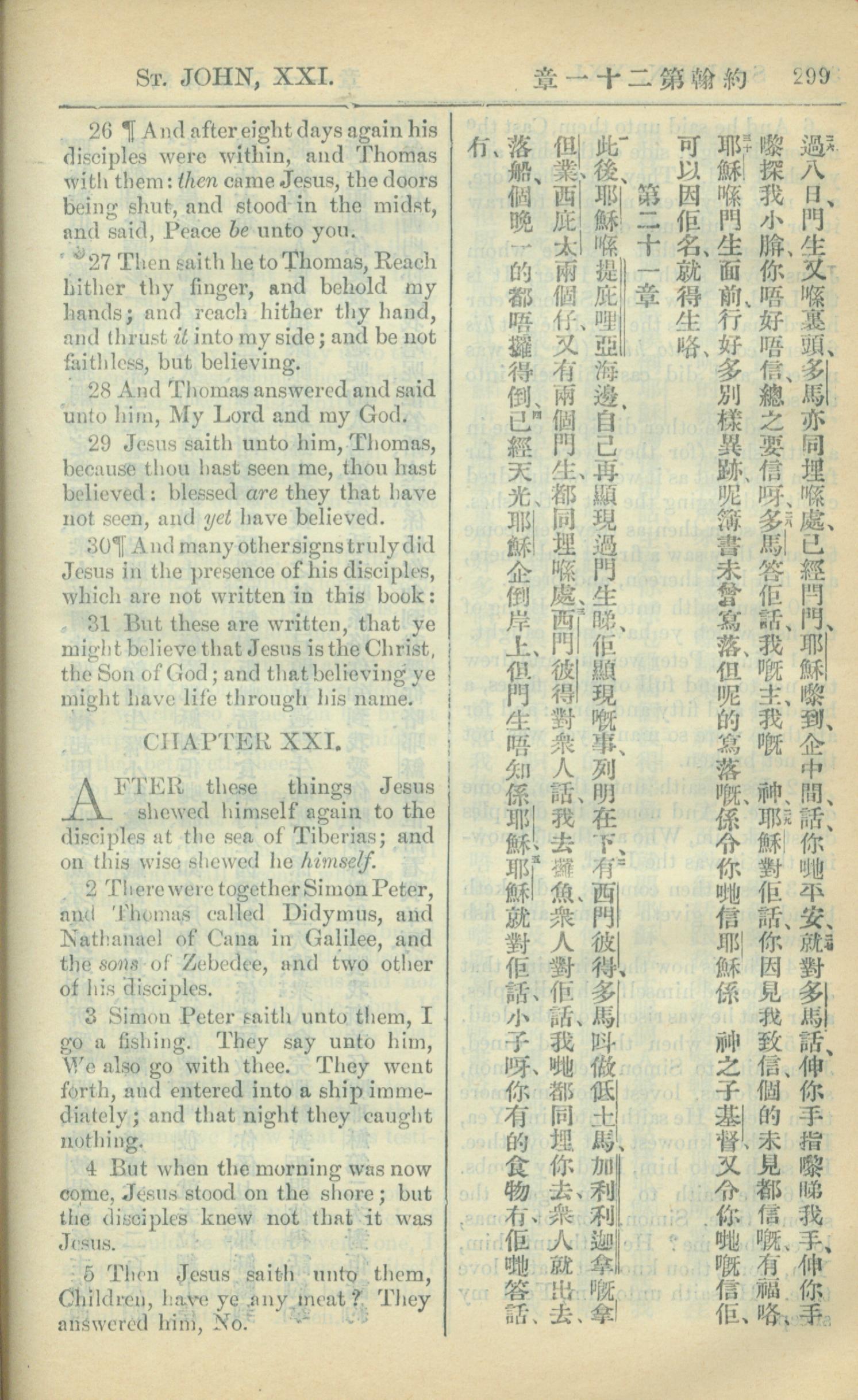 1909年中西字新约全书 约翰福音 20 章 26 节到 21 章 5 节