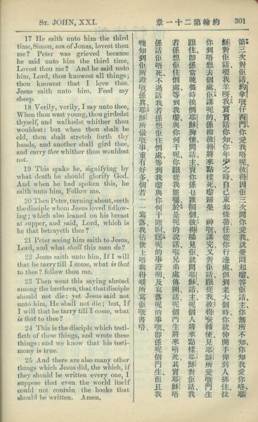 1909年中西字新约全书 约翰福音 21 章 17 节到 21 章 25 节