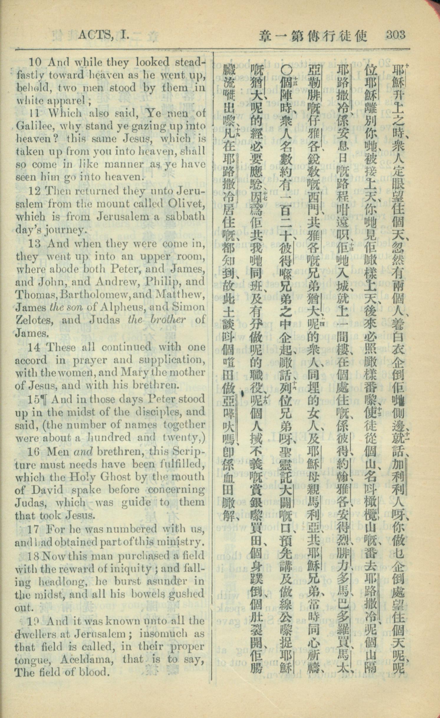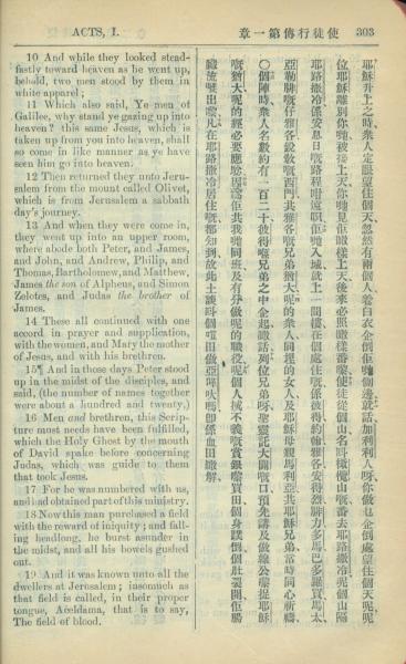 1909年中西字新约全书 使徒行传 1 章 10 节到 1 章 19 节