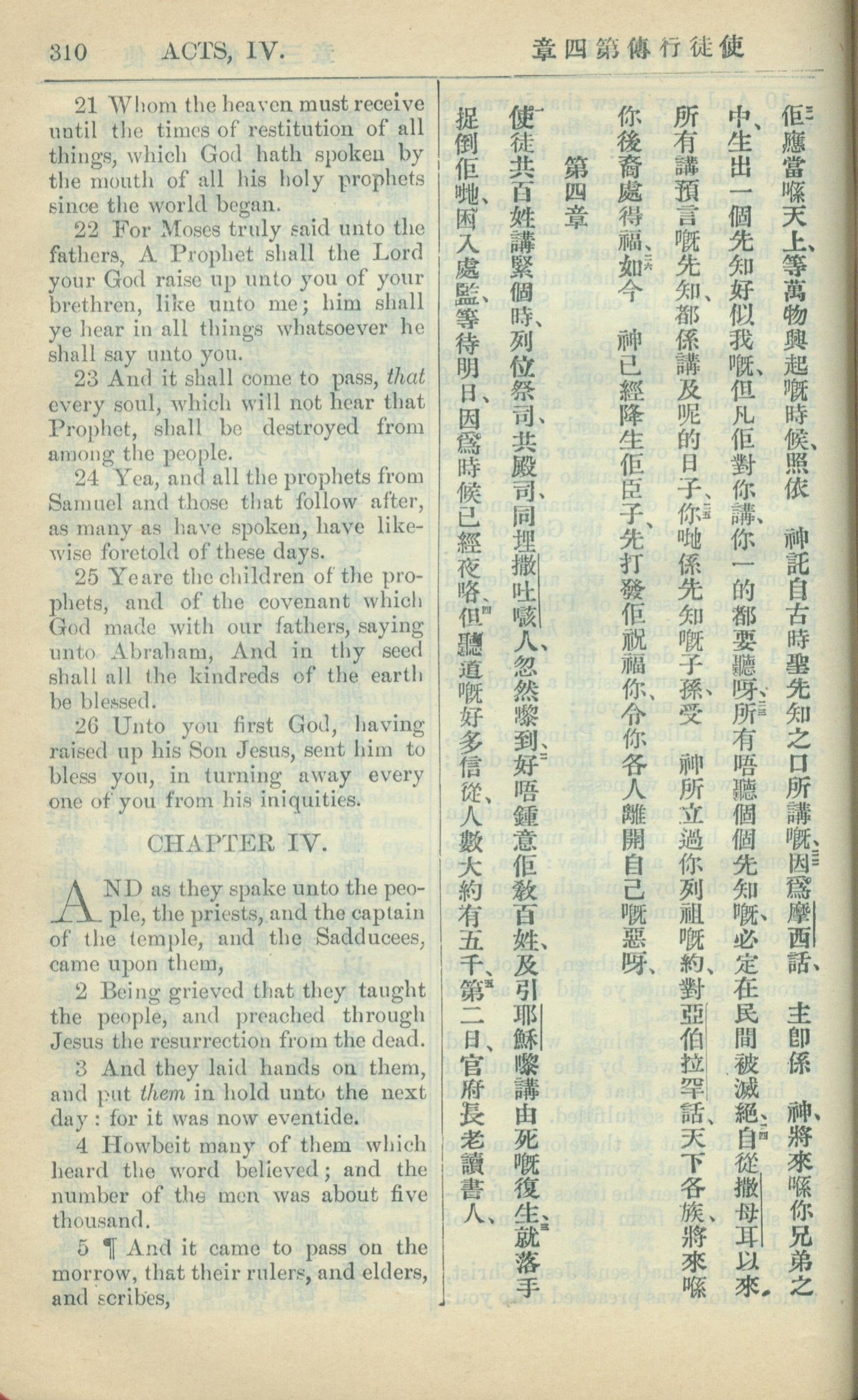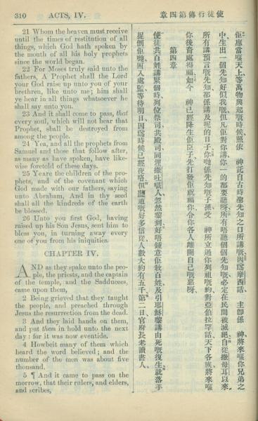 1909年中西字新约全书 使徒行传 3 章 21 节到 4 章 5 节
