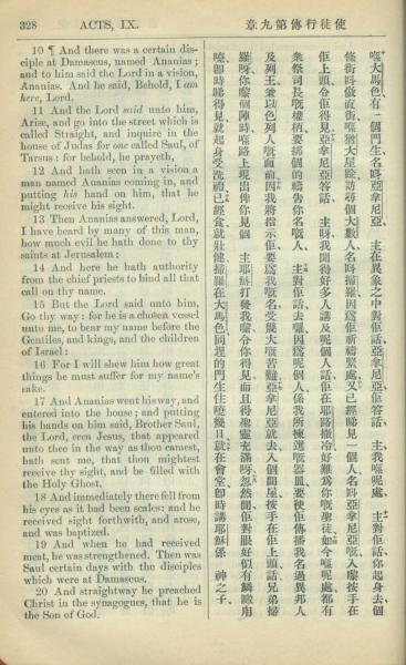 1909年中西字新约全书 使徒行传 9 章 10 节到 9 章 20 节