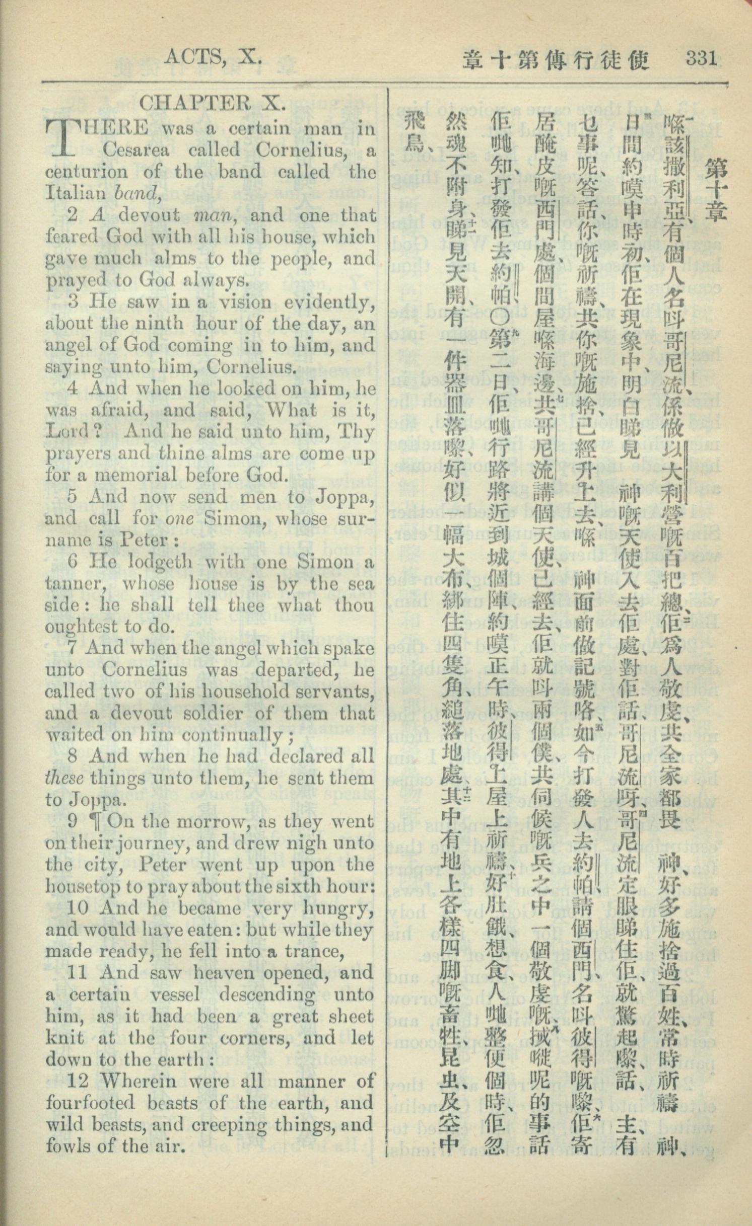 1909年中西字新约全书 使徒行传 10 章 1 节到 10 章 12 节