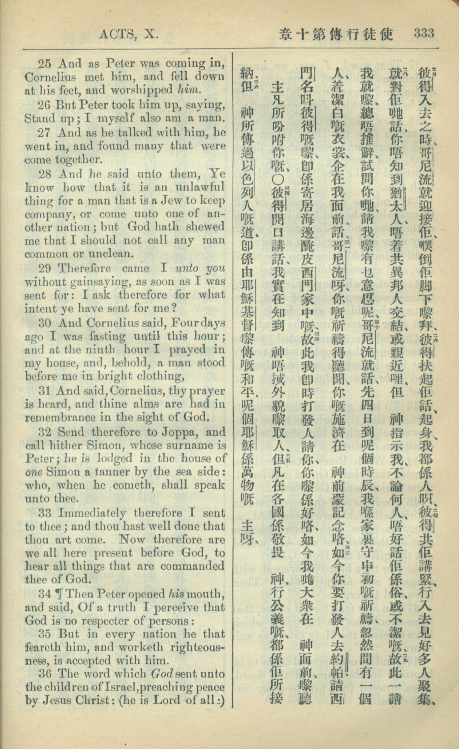 1909年中西字新约全书 使徒行传 10 章 25 节到 10 章 36 节