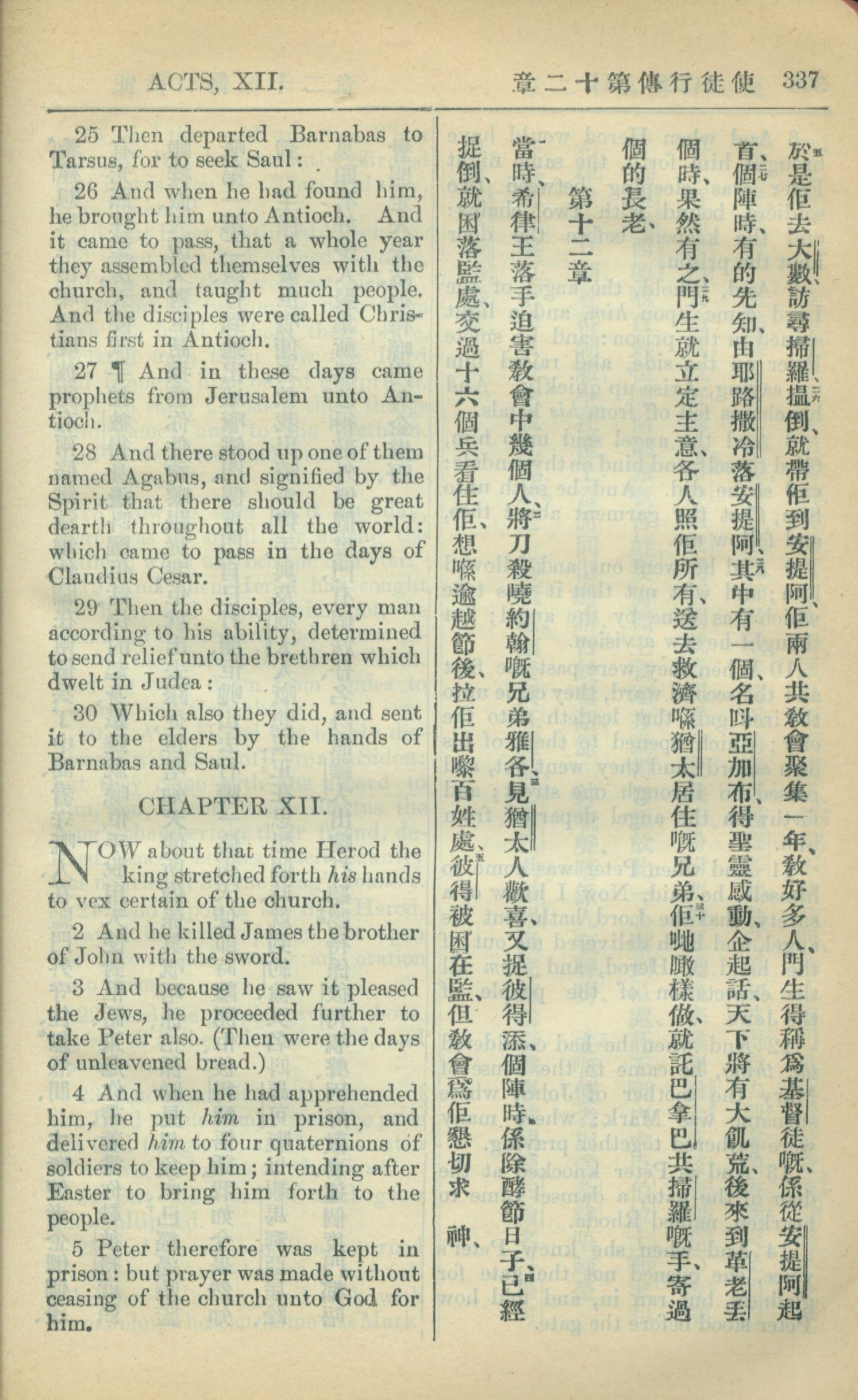 1909年中西字新约全书 使徒行传 11 章 25 节到 12 章 5 节