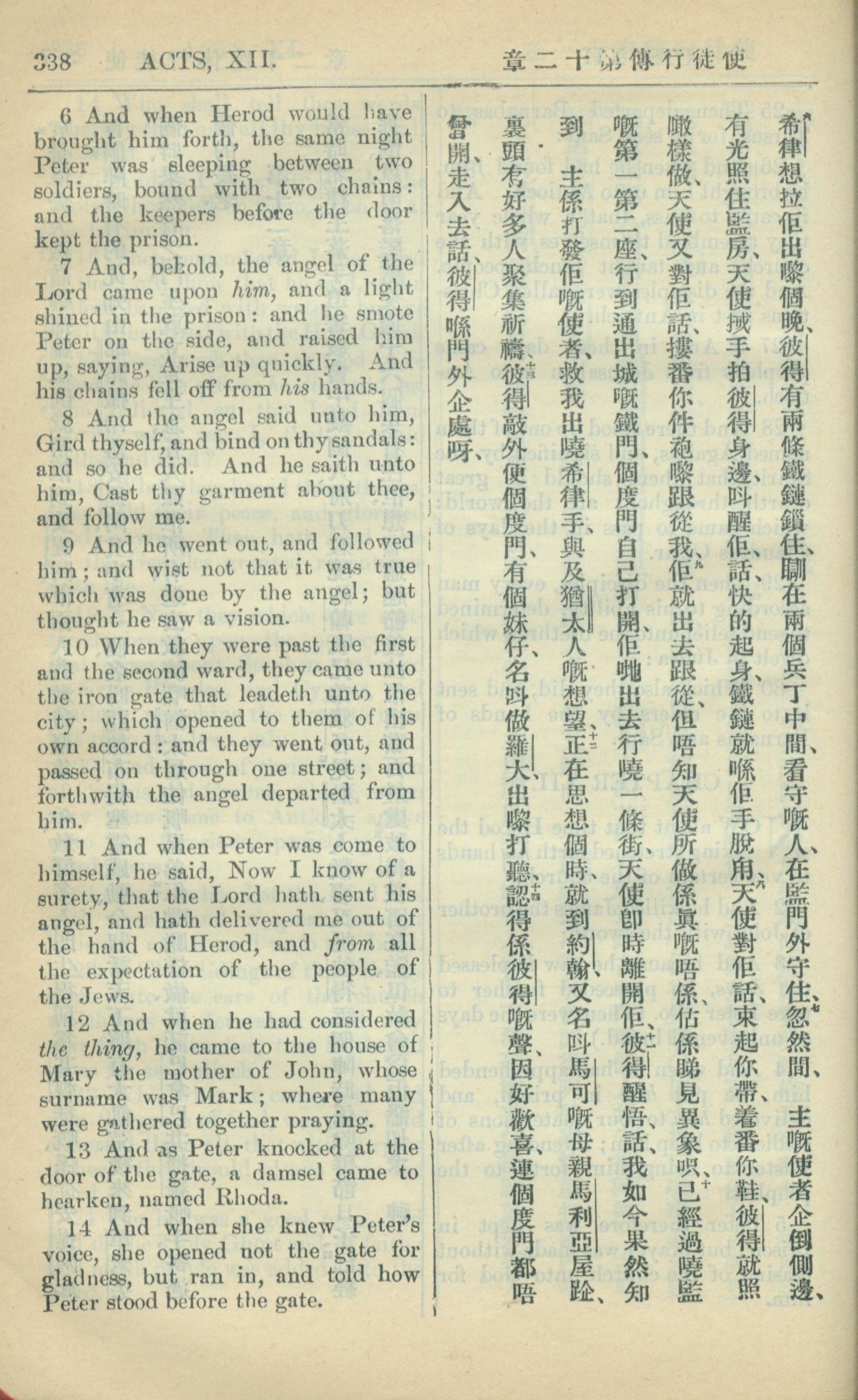 1909年中西字新约全书 使徒行传 12 章 6 节到 12 章 14 节
