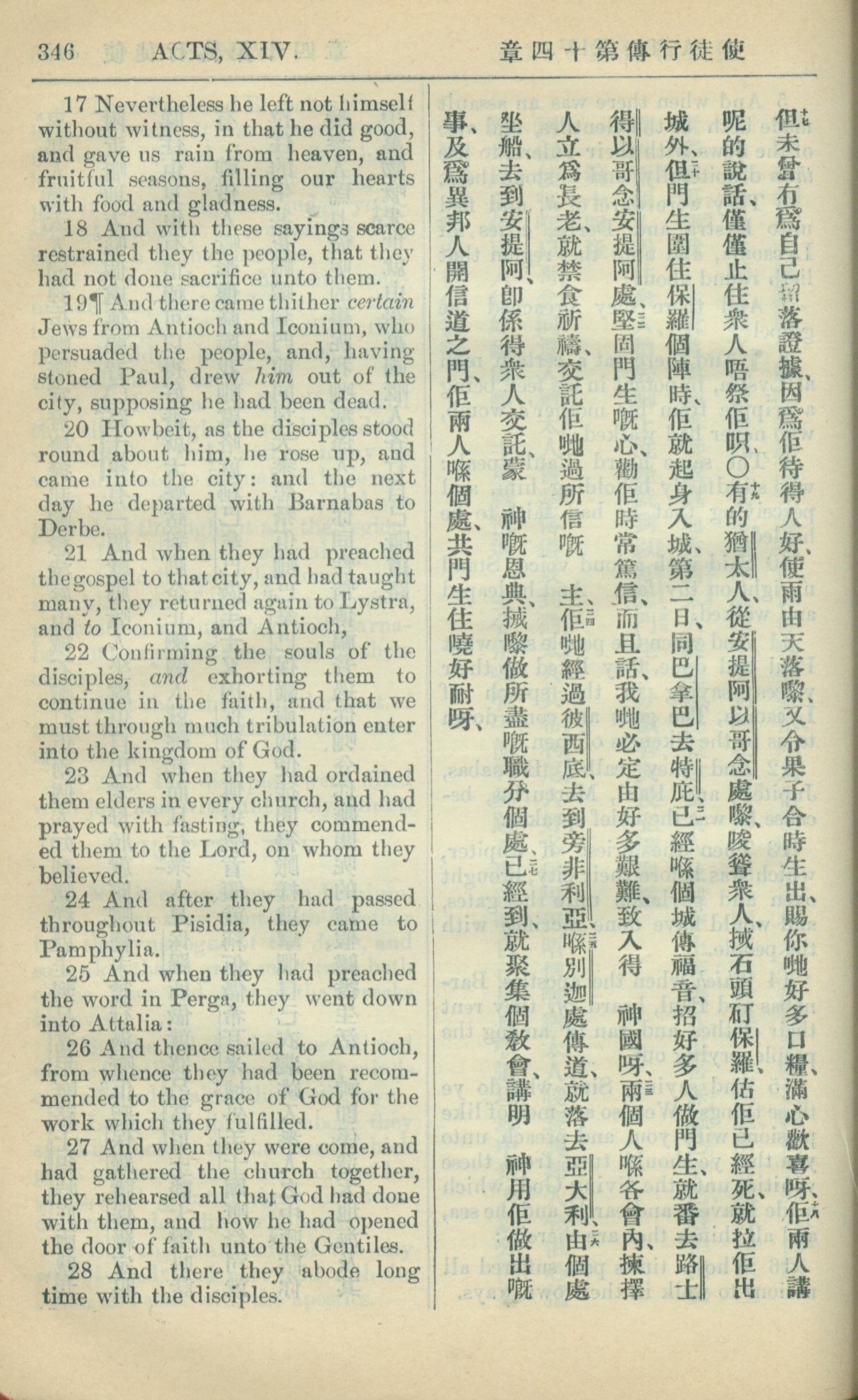 1909年中西字新约全书 使徒行传 14 章 17 节到 14 章 28 节