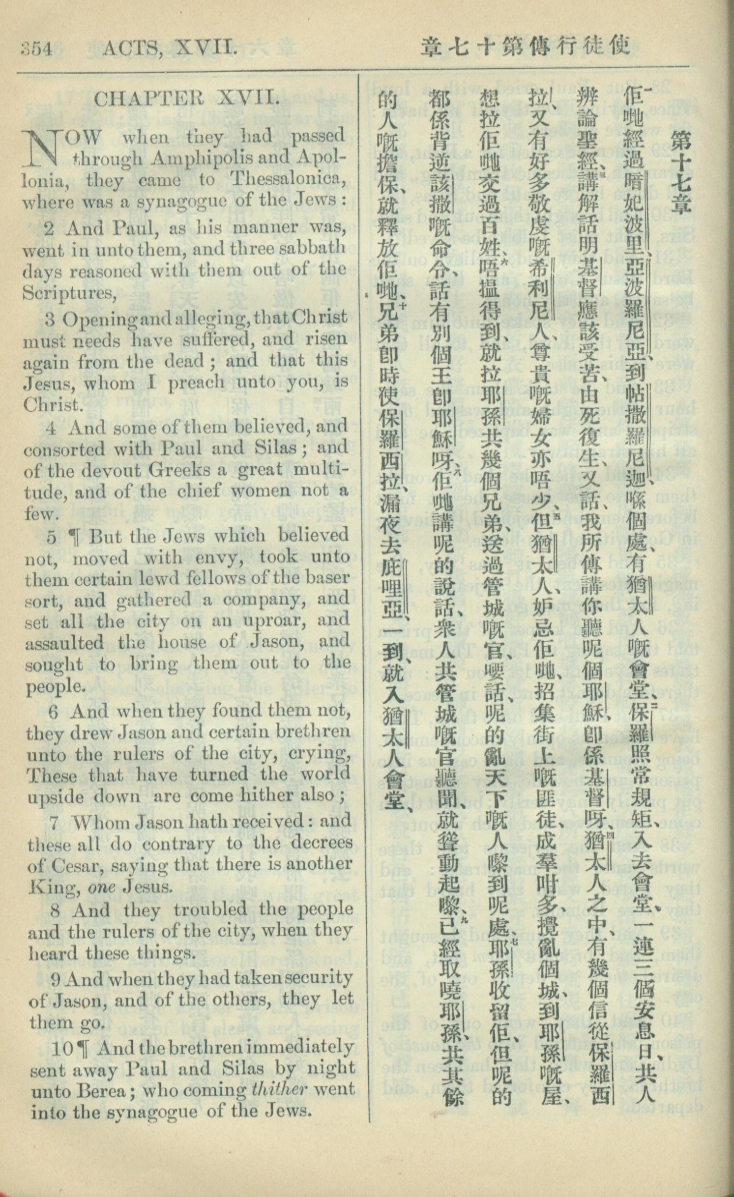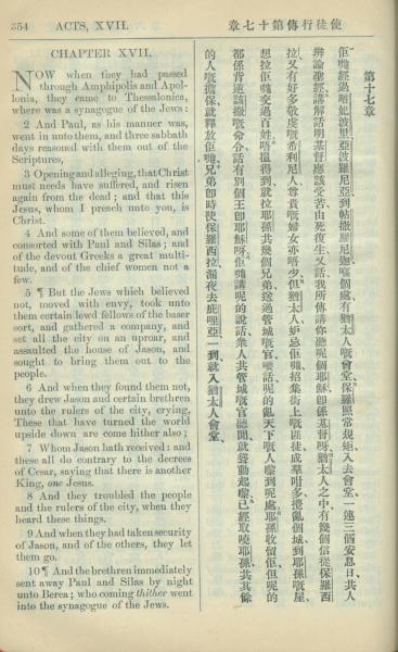 1909年中西字新约全书 使徒行传 17 章 1 节到 17 章 10 节
