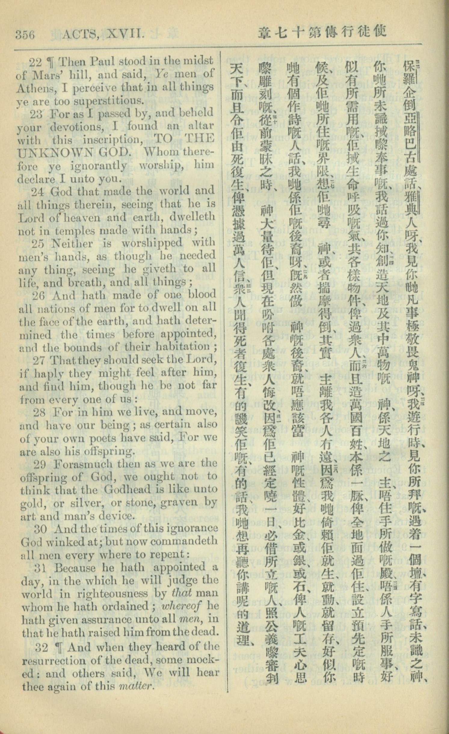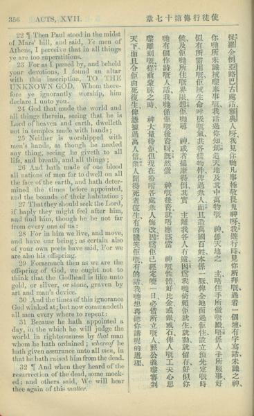 1909年中西字新约全书 使徒行传 17 章 22 节到 17 章 32 节