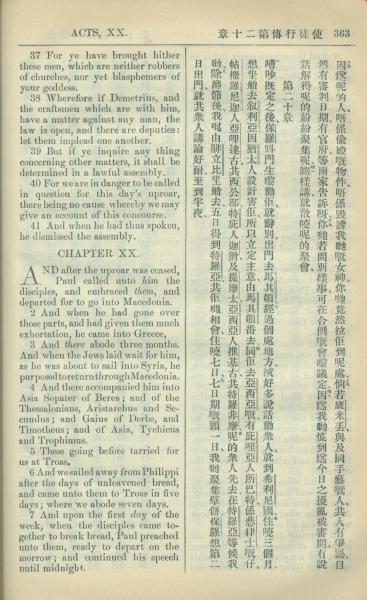 1909年中西字新约全书 使徒行传 19 章 37 节到 20 章 7 节