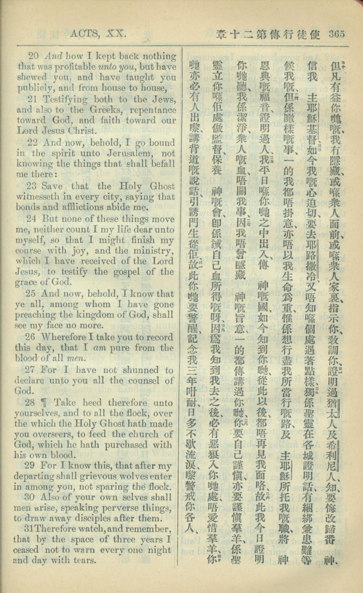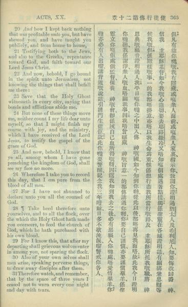 1909年中西字新约全书 使徒行传 20 章 20 节到 20 章 31 节