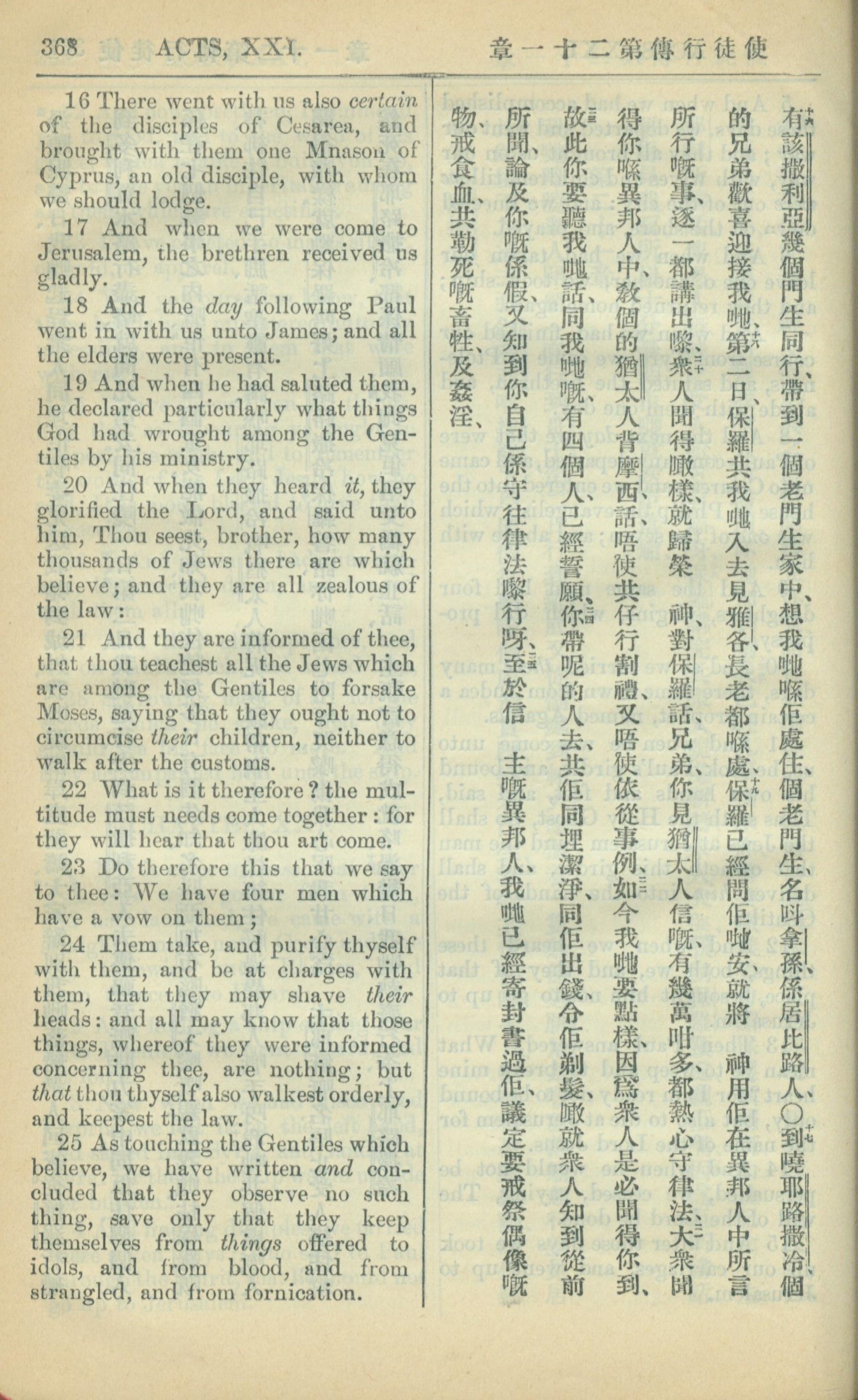 1909年中西字新约全书 使徒行传 21 章 16 节到 21 章 25 节