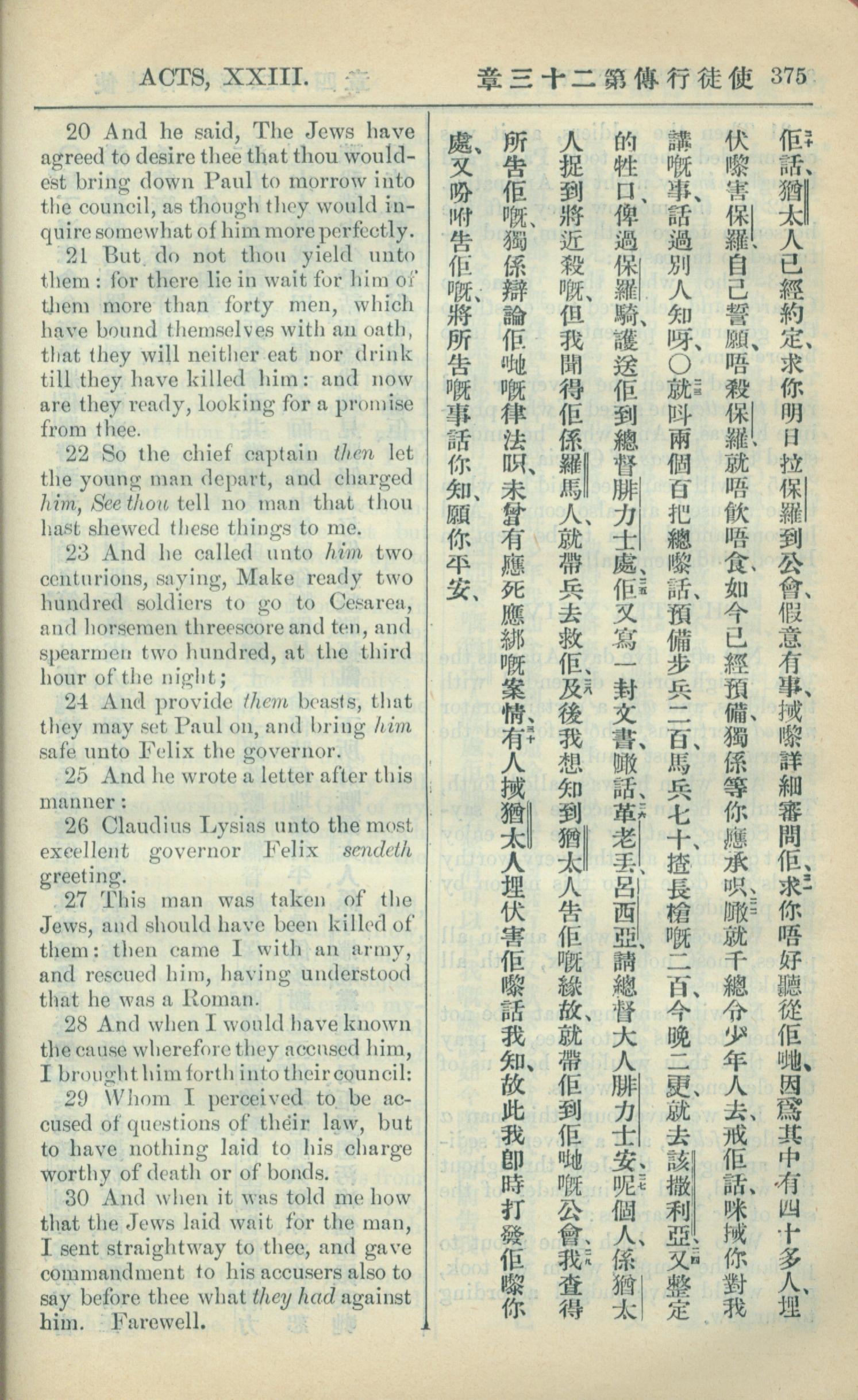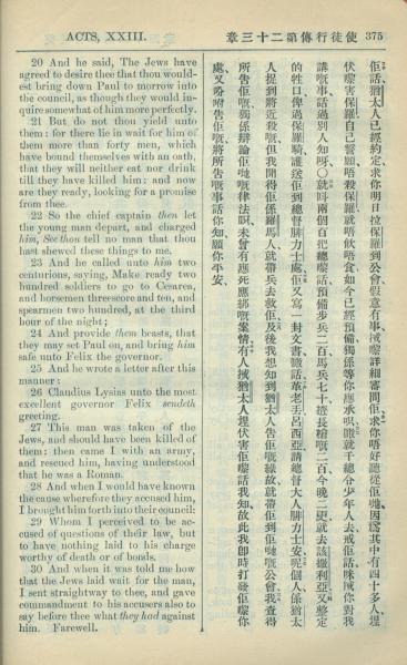 1909年中西字新约全书 使徒行传 23 章 20 节到 23 章 30 节