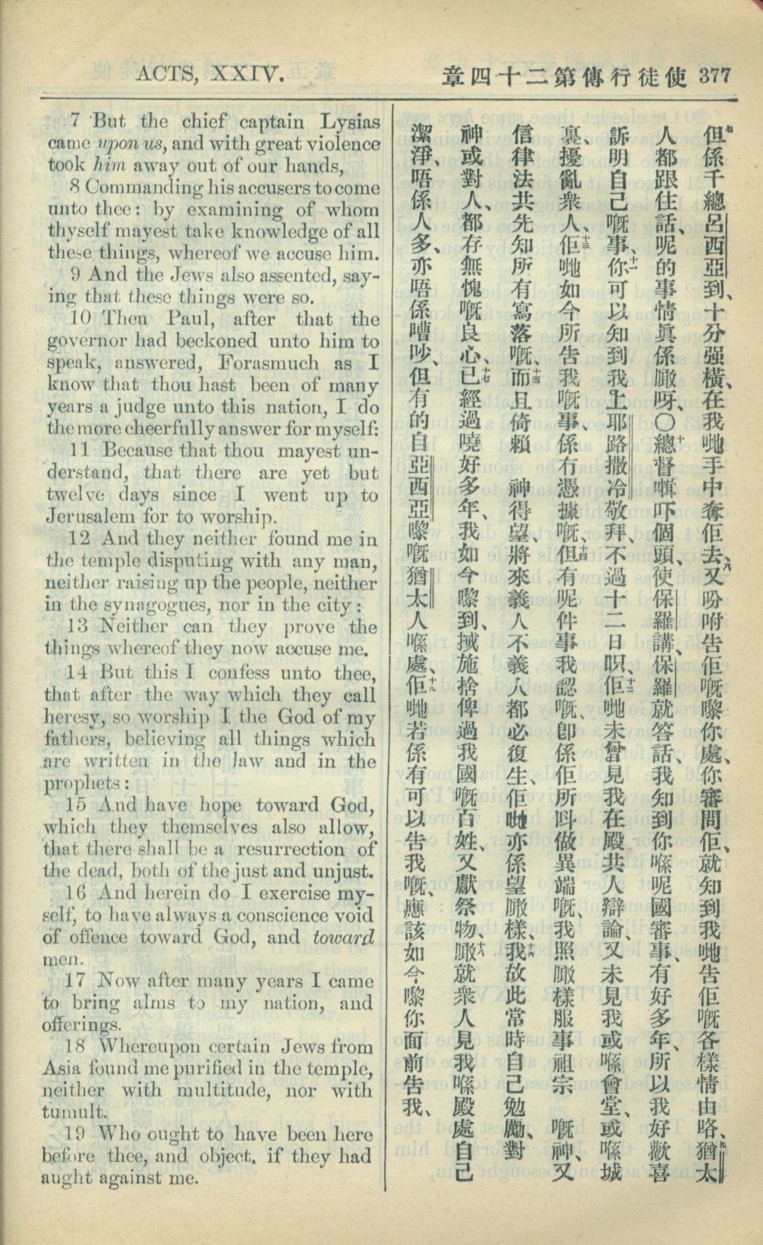 1909年中西字新约全书 使徒行传 24 章 7 节到 24 章 19 节