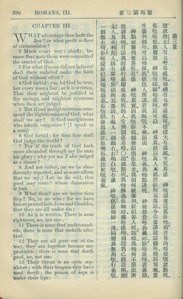 1909年中西字新约全书 罗马书 3 章 1 节到 3 章 13 节