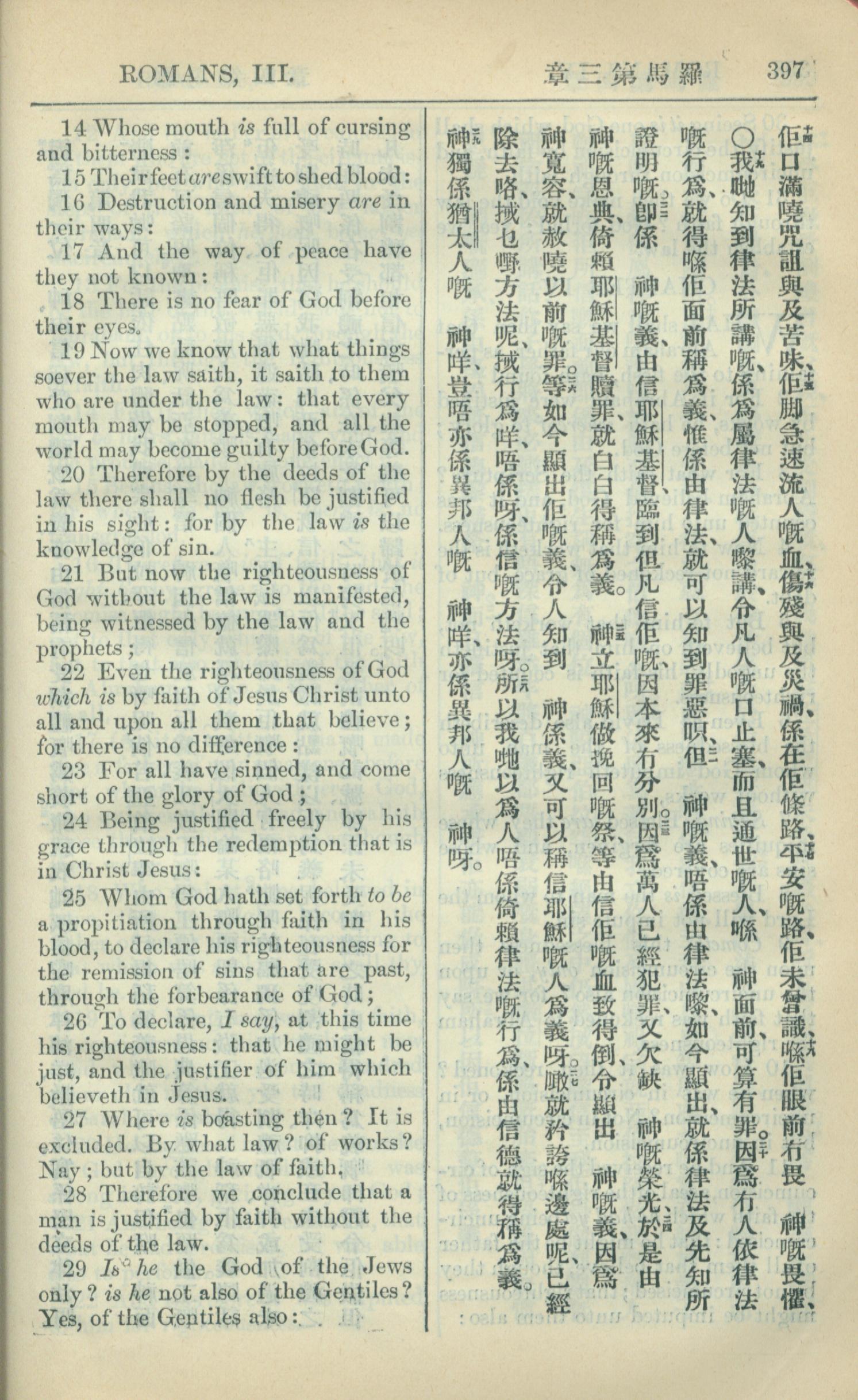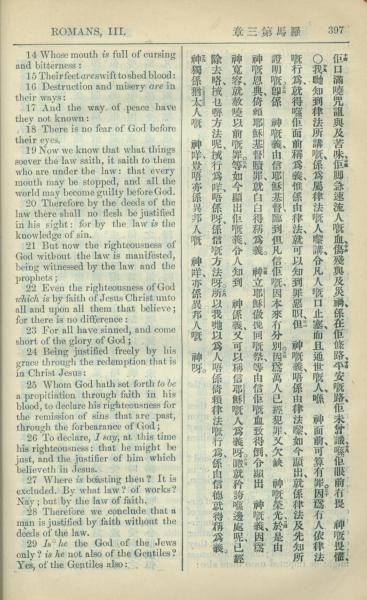 1909年中西字新约全书 罗马书 3 章 14 节到 3 章 29 节