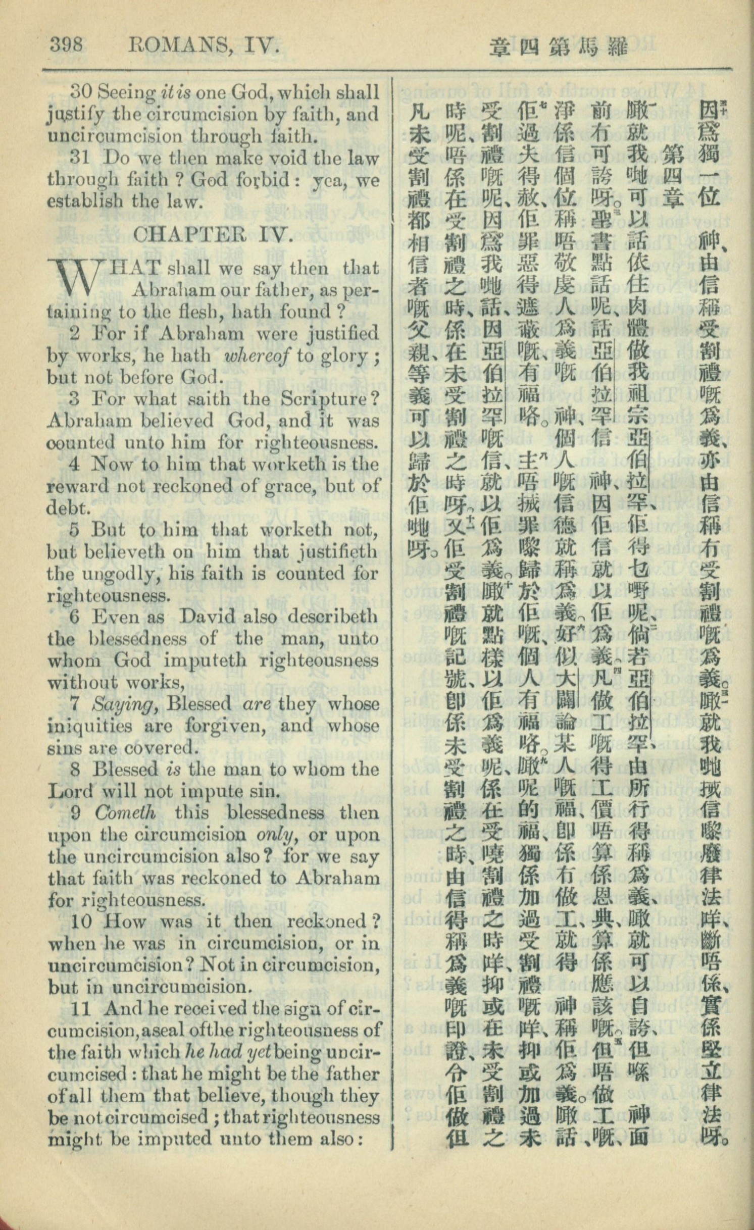 1909年中西字新约全书 罗马书 3 章 30 节到 4 章 11 节