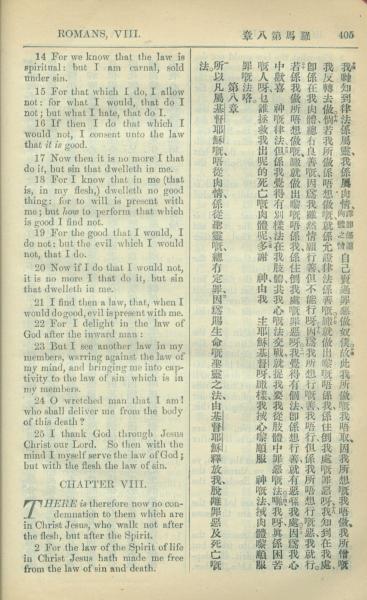 1909年中西字新约全书 罗马书 7 章 14 节到 8 章 2 节
