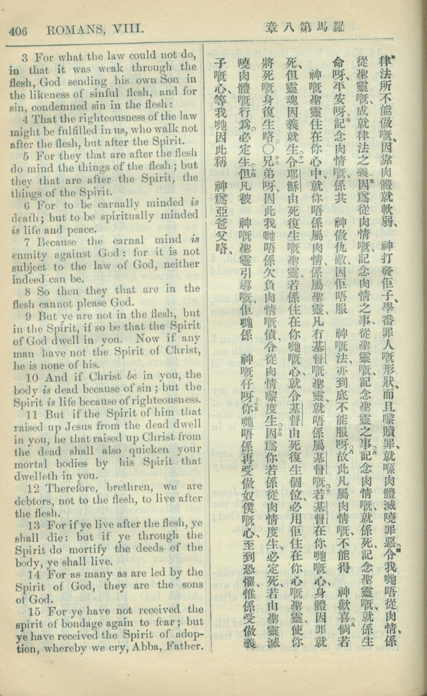 1909年中西字新约全书 罗马书 8 章 3 节到 8 章 15 节