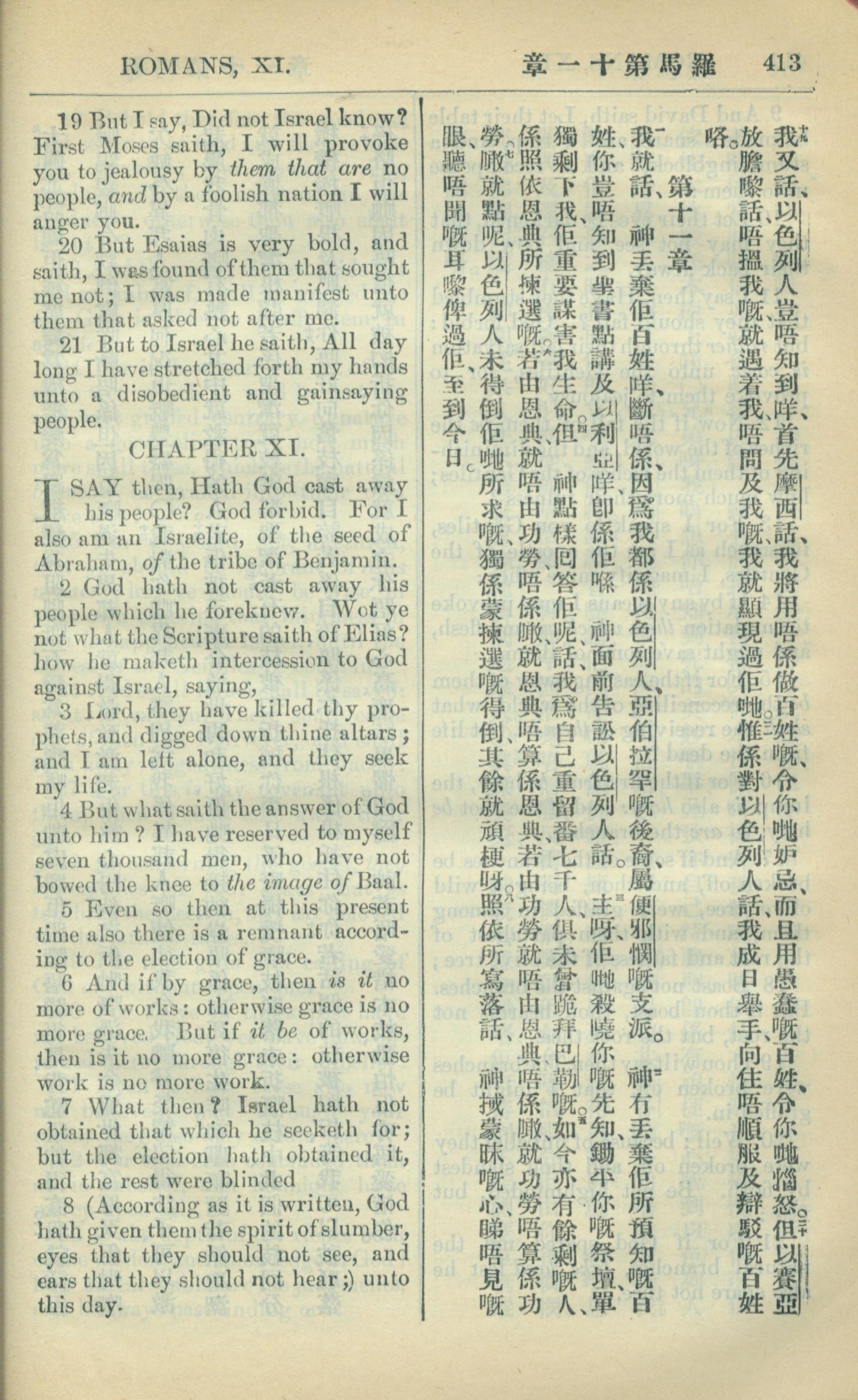 1909年中西字新约全书 罗马书 10 章 19 节到 11 章 8 节
