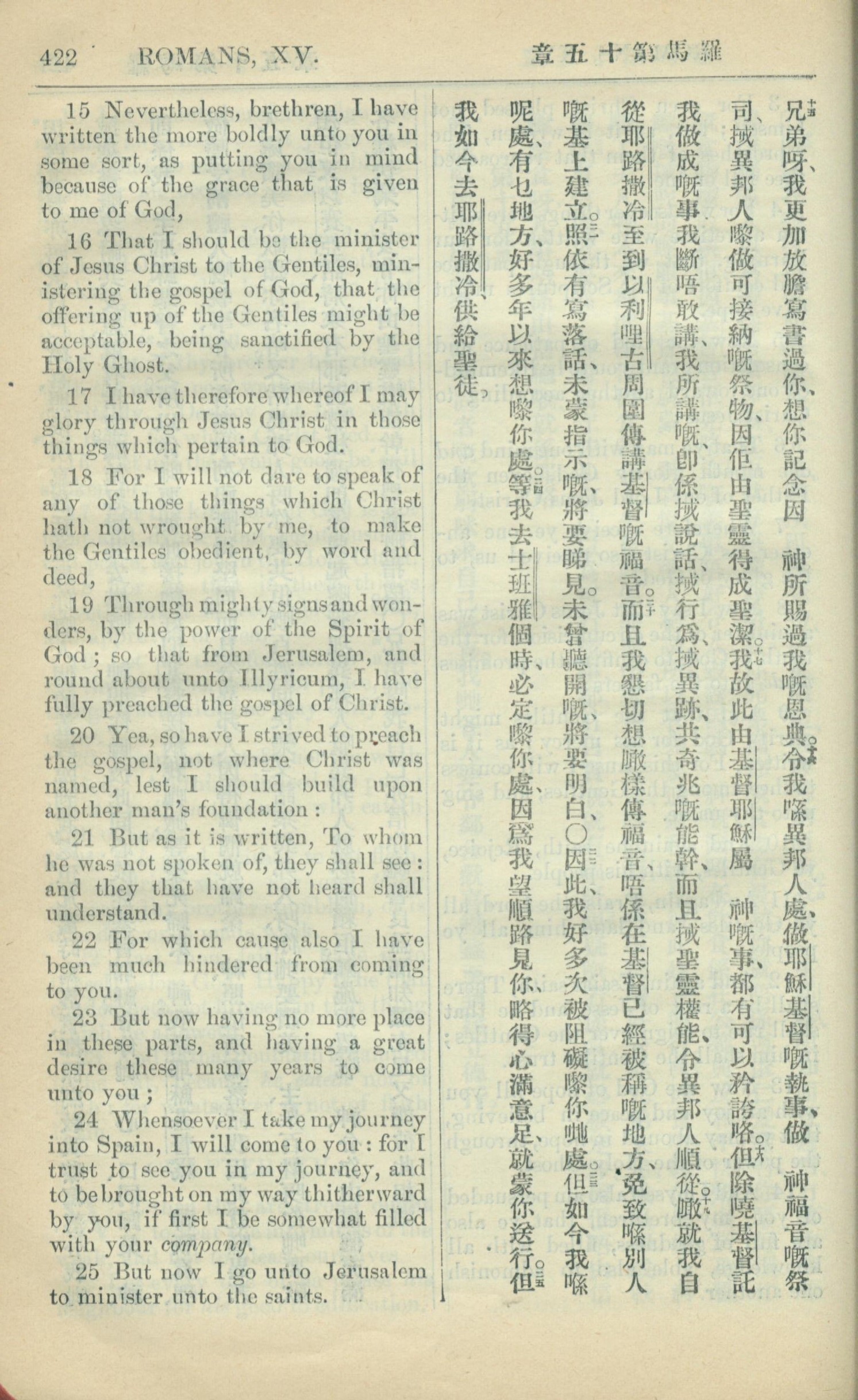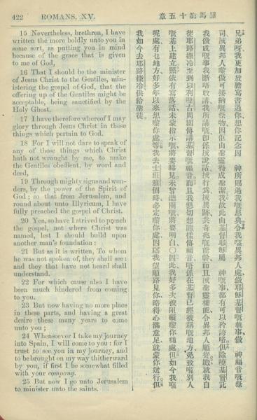 1909年中西字新约全书 罗马书 15 章 15 节到 15 章 25 节