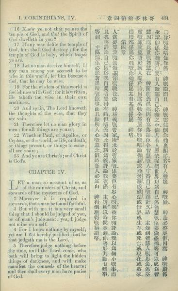 1909年中西字新约全书 哥林多前书 3 章 16 节到 4 章 5 节