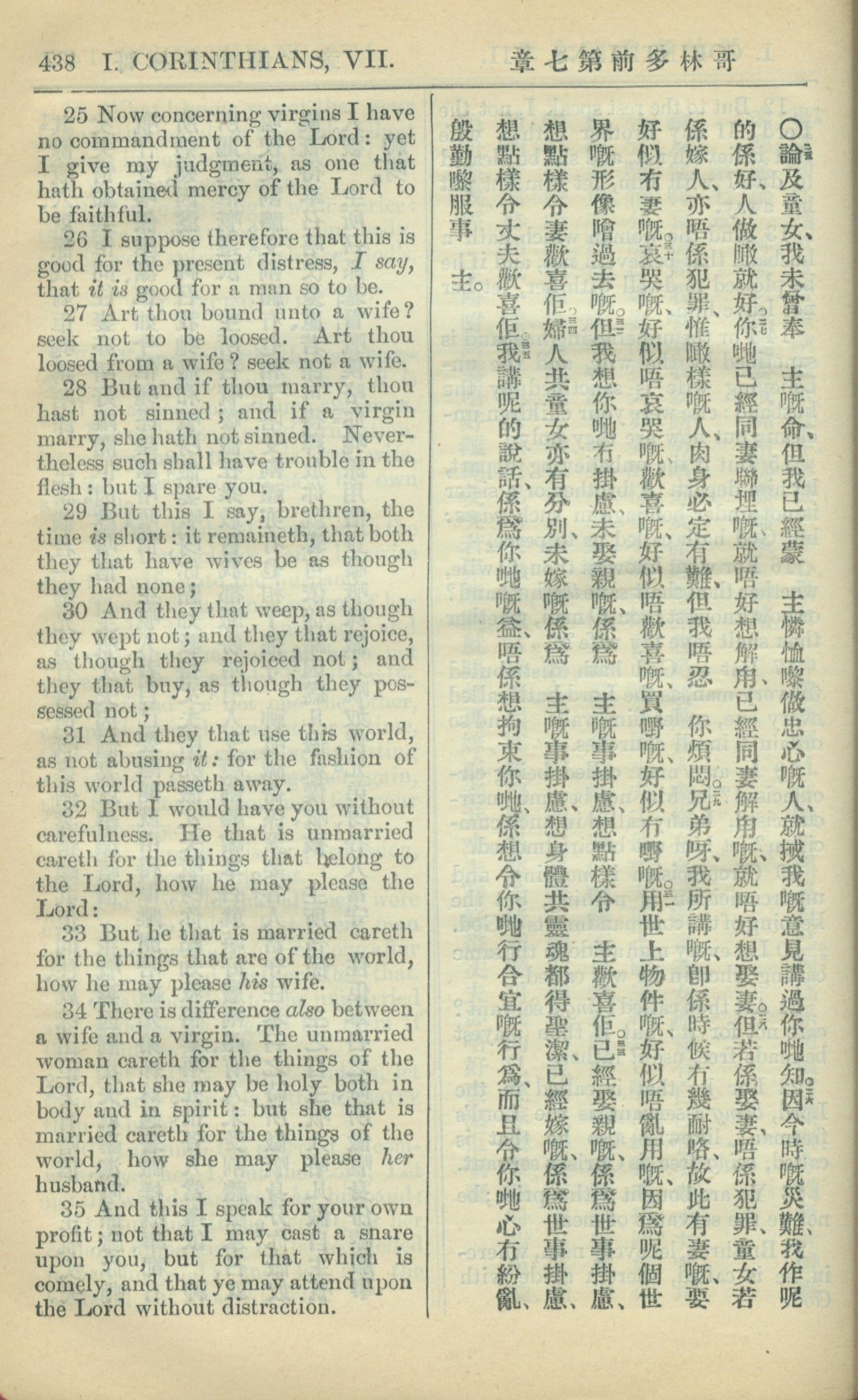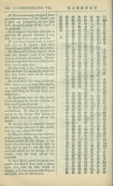1909年中西字新约全书 哥林多前书 7 章 25 节到 7 章 35 节