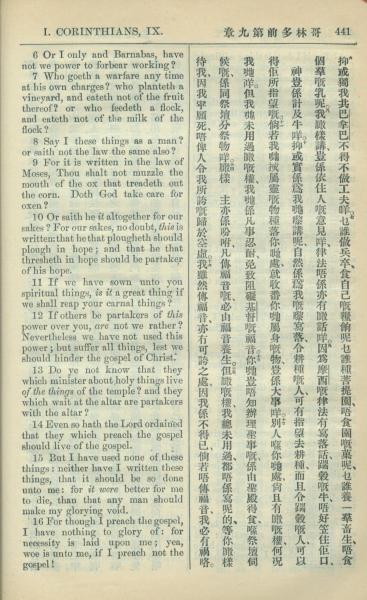 1909年中西字新约全书 哥林多前书 9 章 6 节到 9 章 16 节