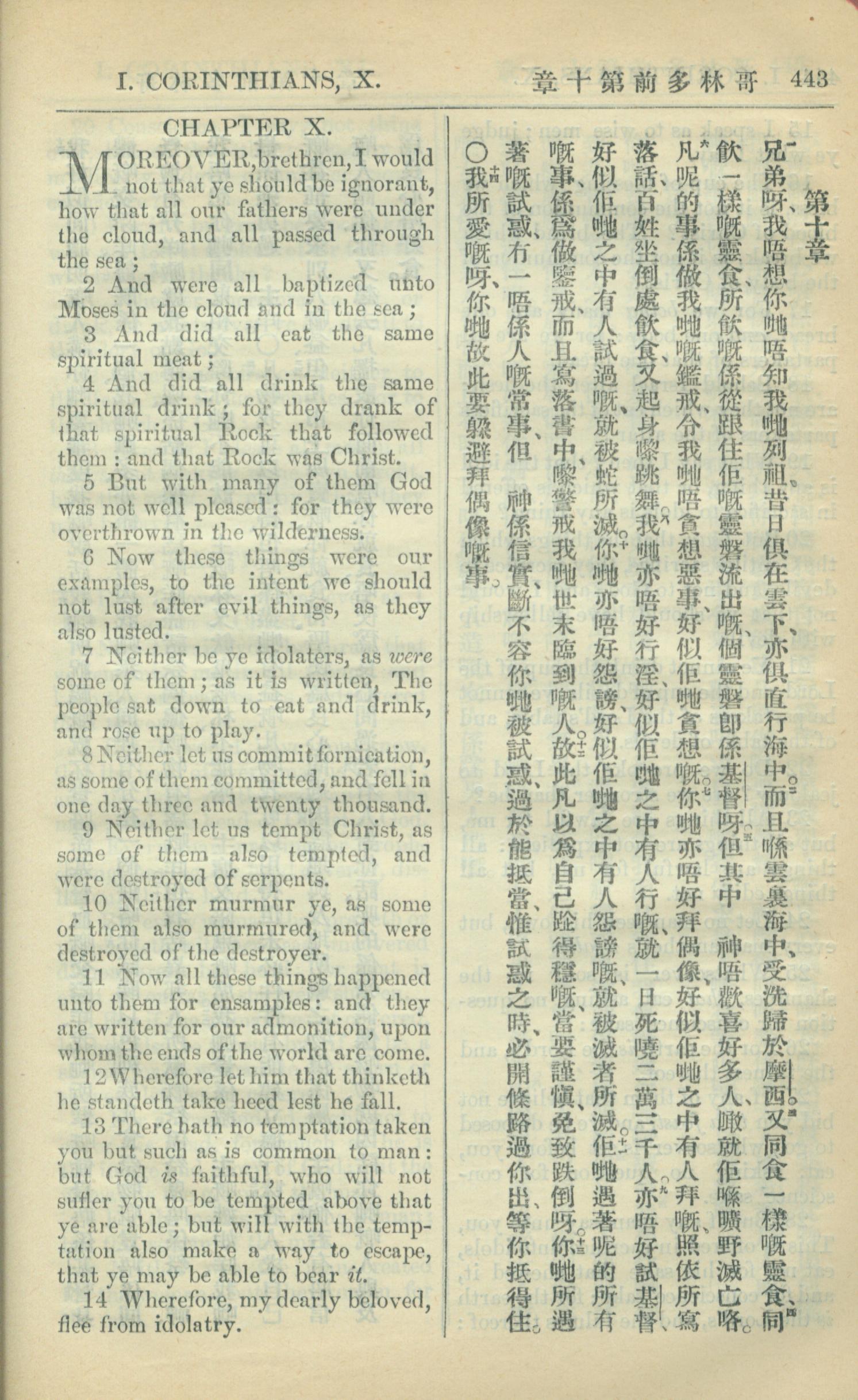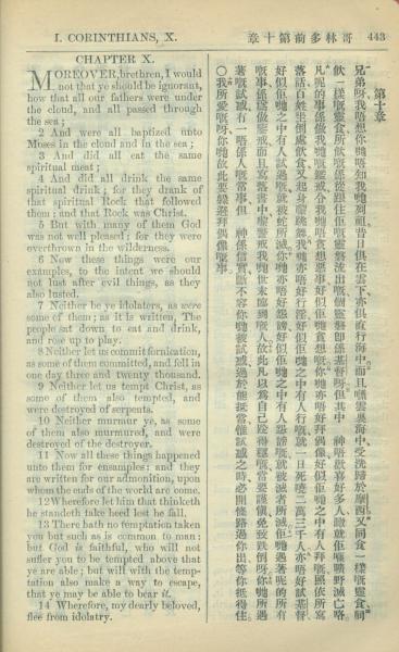 1909年中西字新约全书 哥林多前书 10 章 1 节到 10 章 14 节