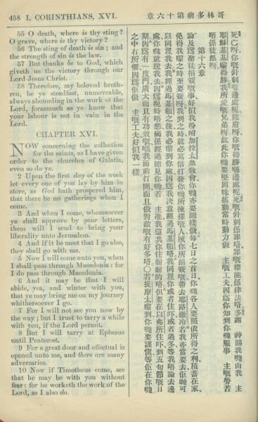 1909年中西字新约全书 哥林多前书 15 章 55 节到 16 章 10 节