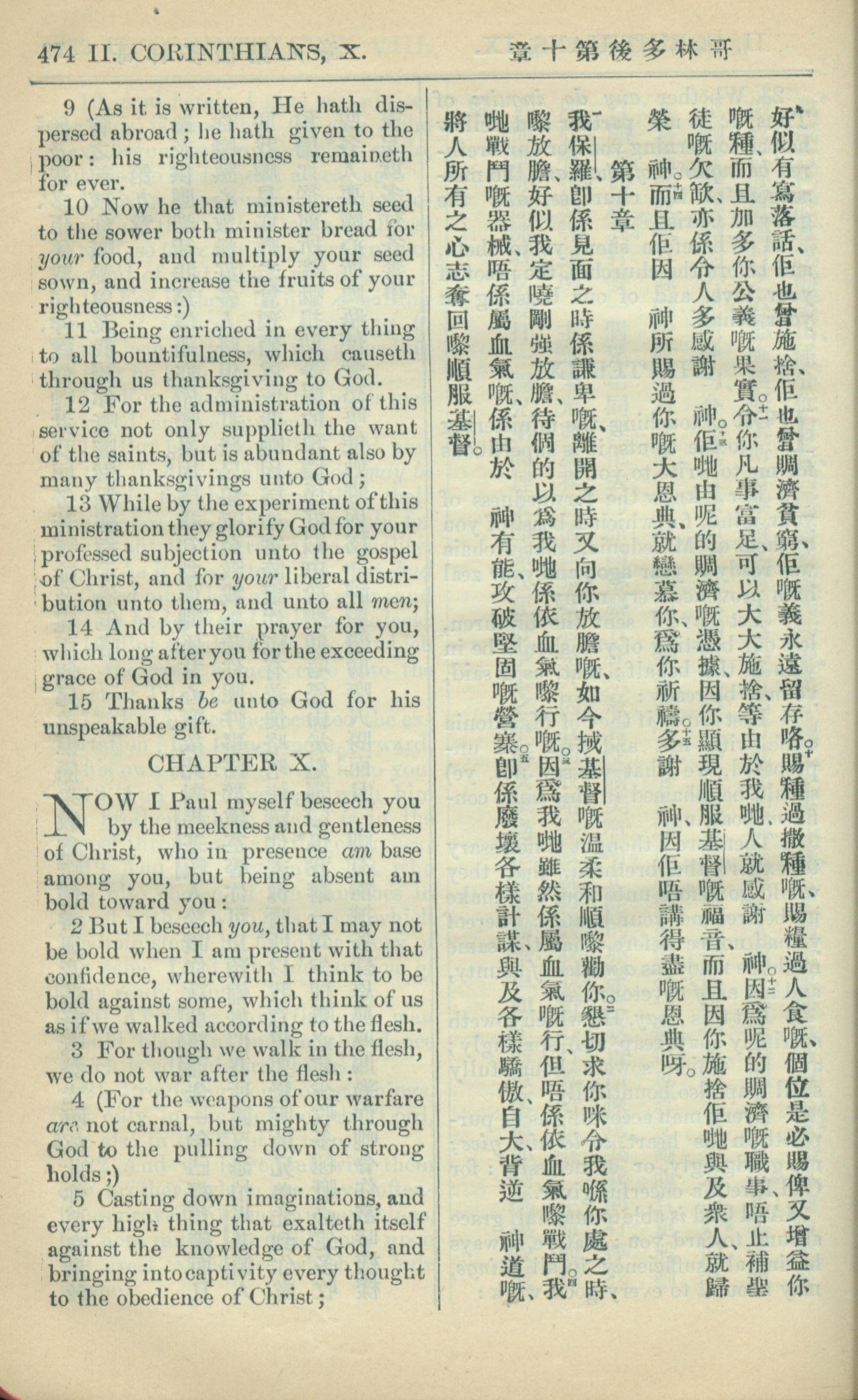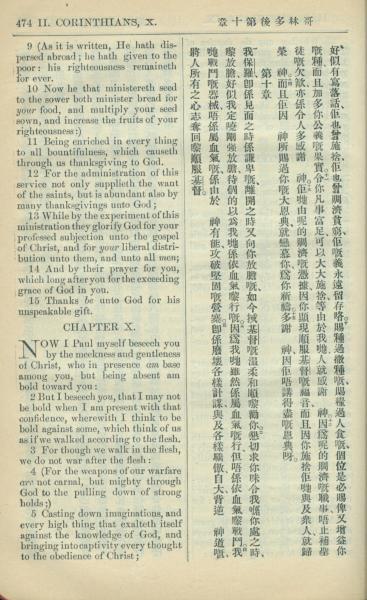1909年中西字新约全书 哥林多后书 9 章 9 节到 10 章 5 节