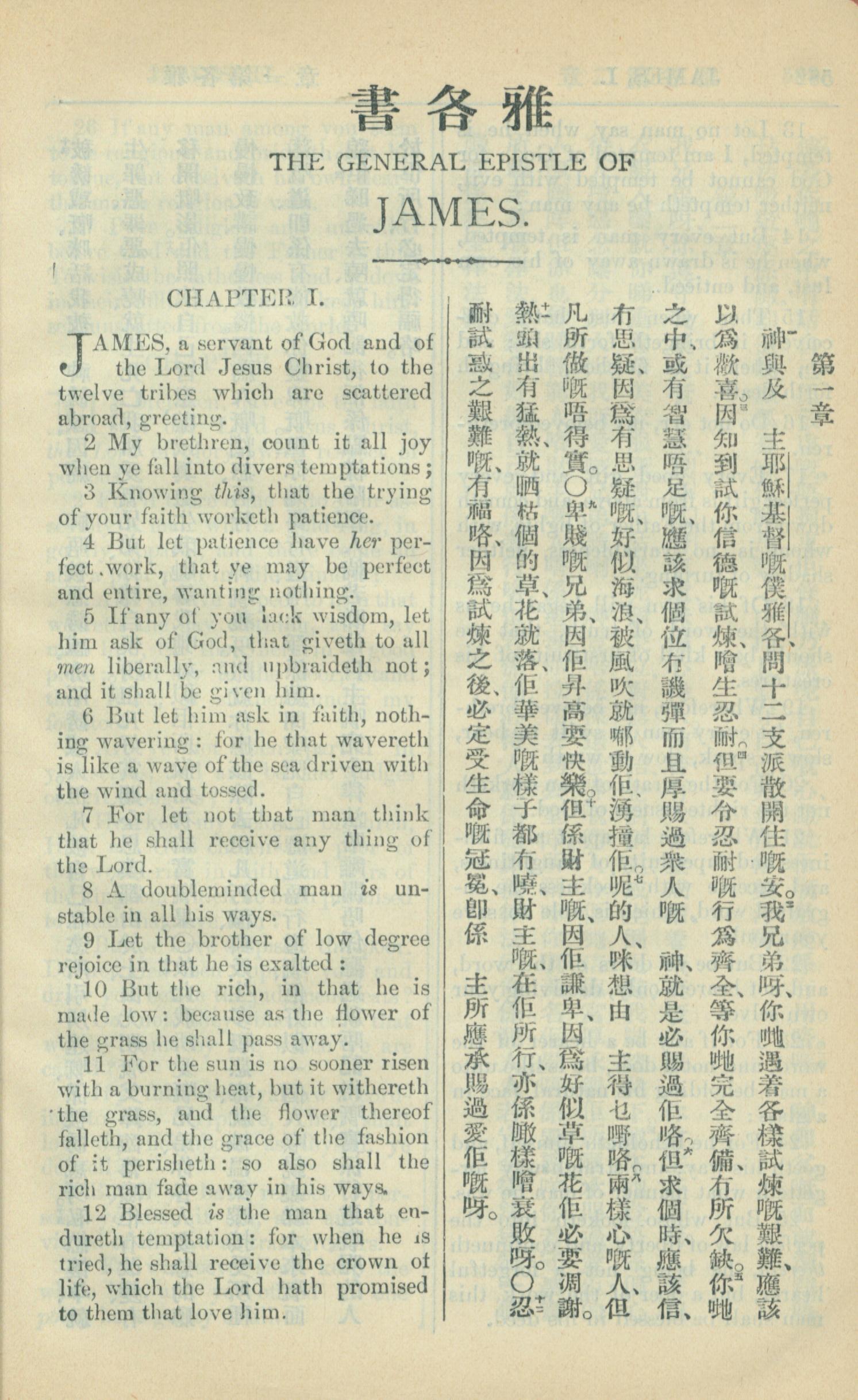 1909年中西字新约全书 雅各书 1 章 1 节到 1 章 12 节