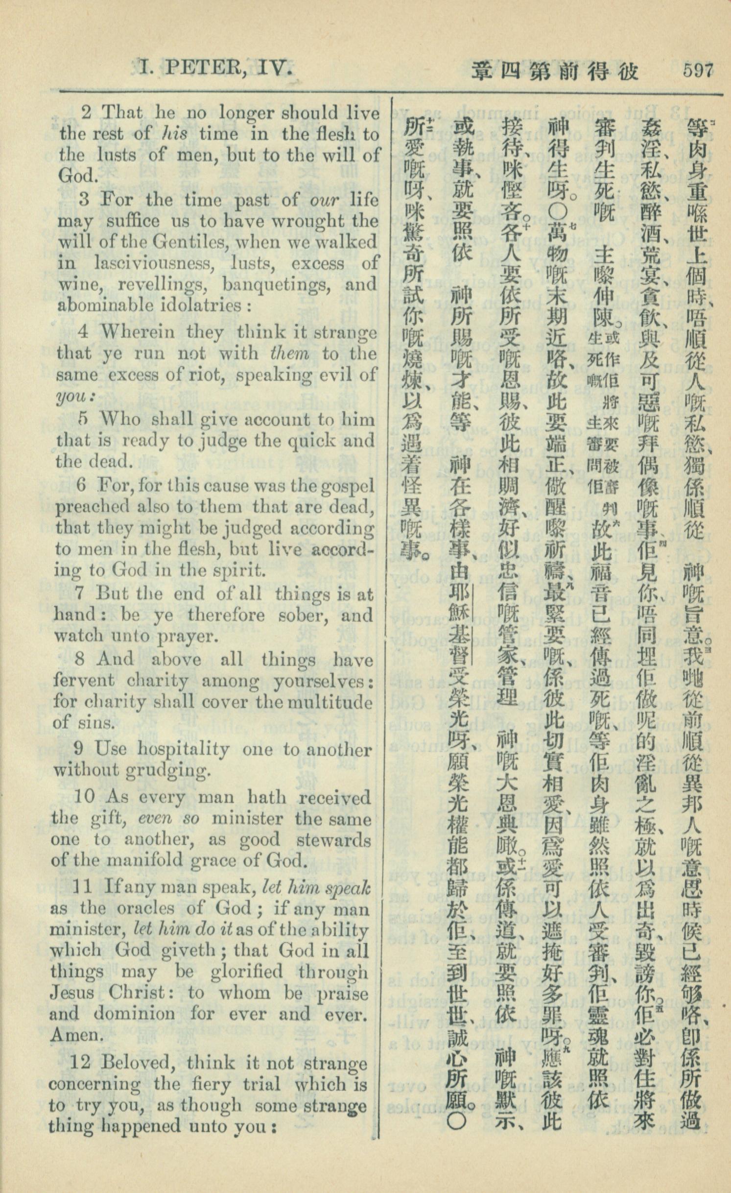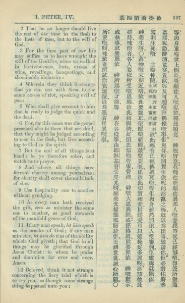 1909年中西字新约全书 彼得前书 4 章 2 节到 4 章 12 节