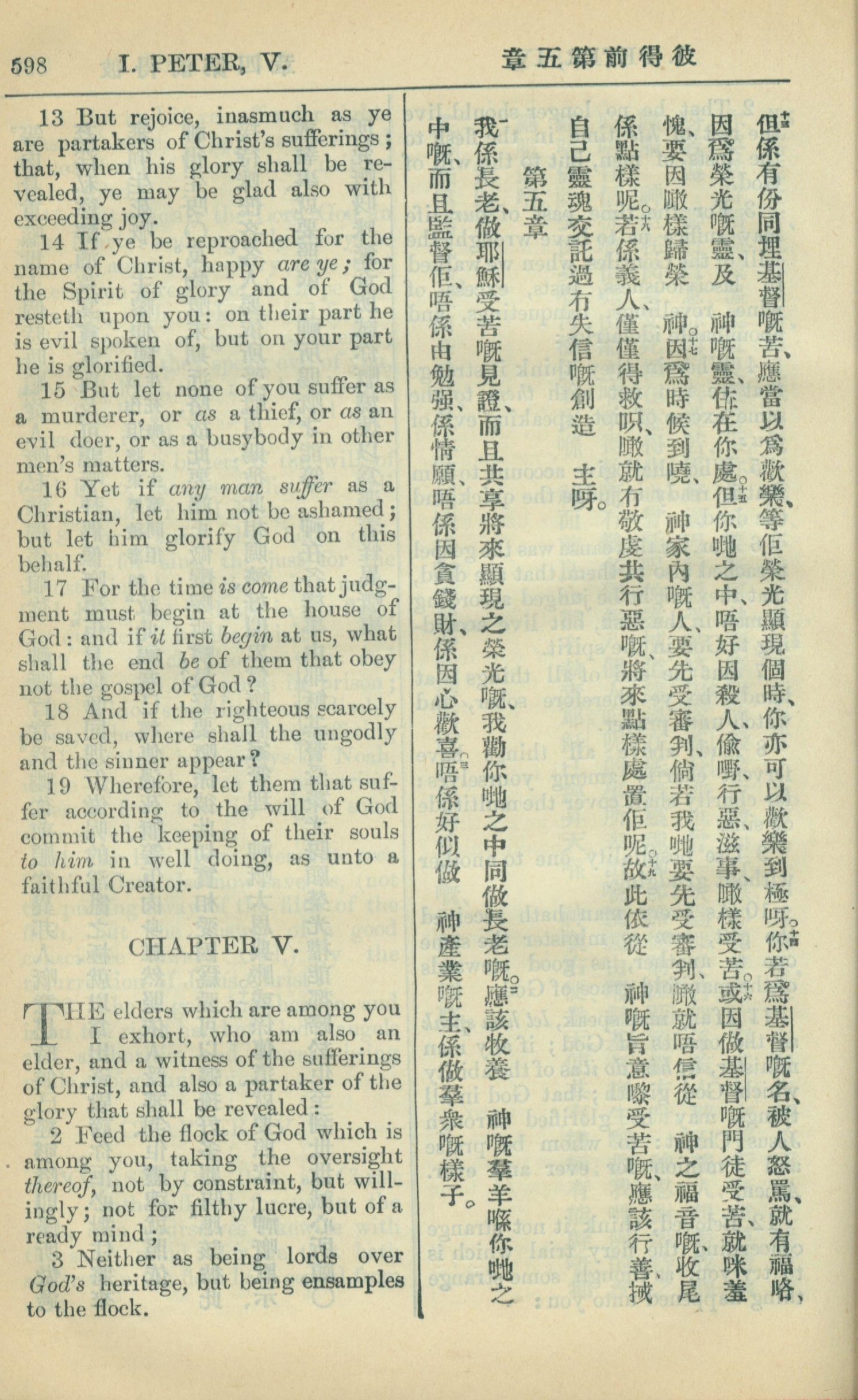 1909年中西字新约全书 彼得前书 4 章 13 节到 5 章 3 节