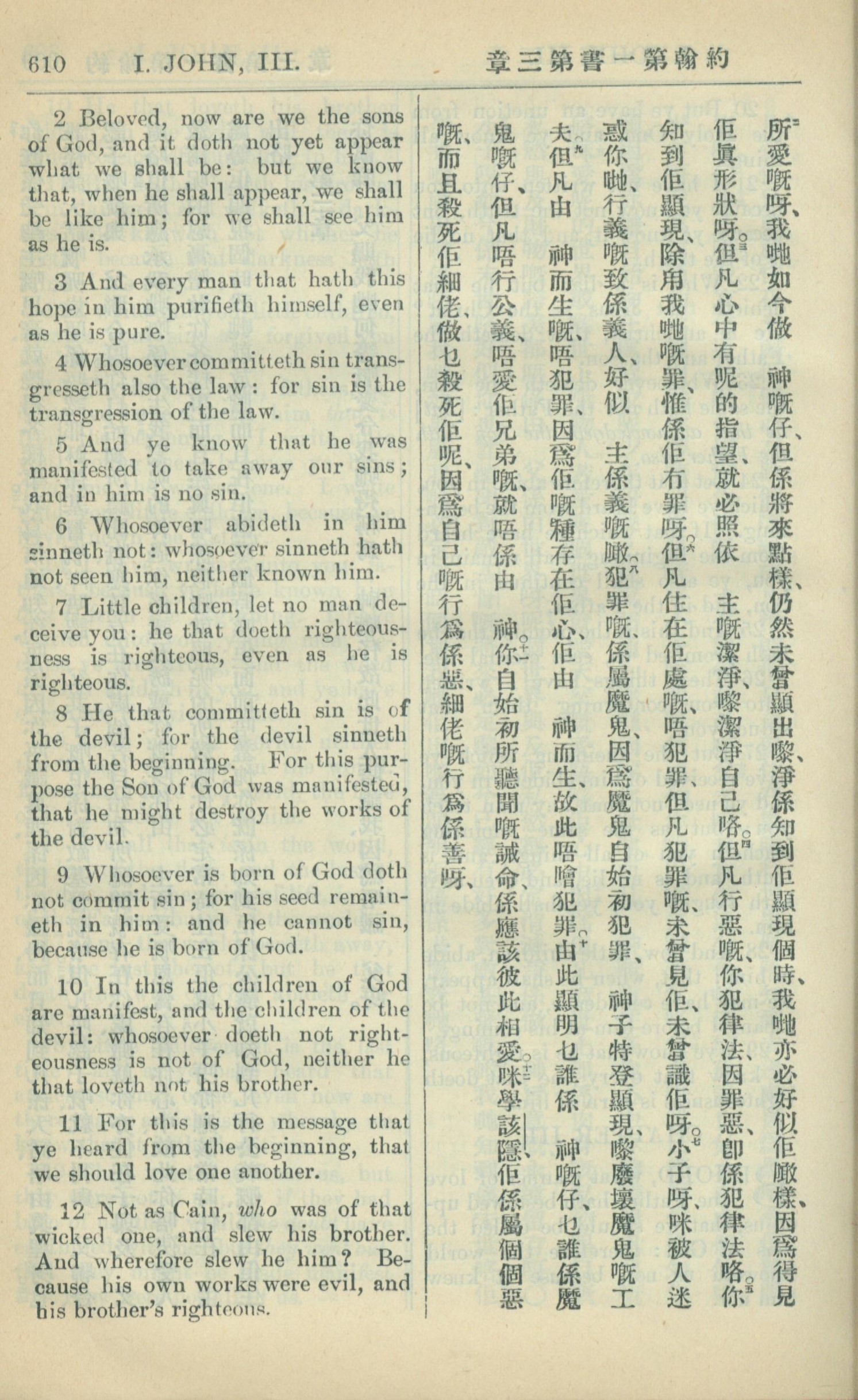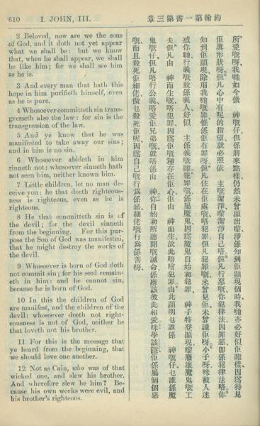 1909年中西字新约全书 约翰一书 3 章 2 节到 3 章 12 节