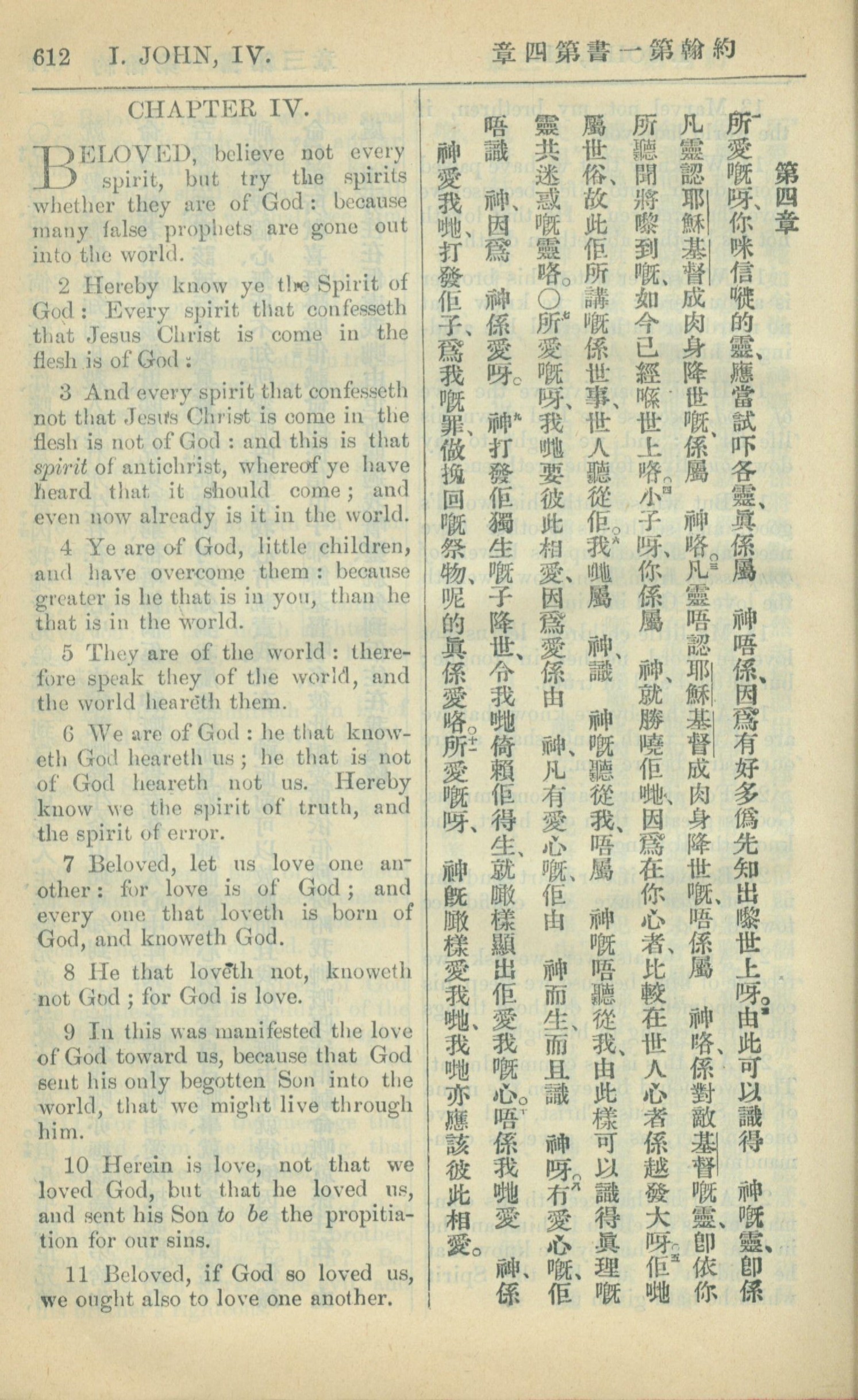 1909年中西字新约全书 约翰一书 4 章 1 节到 4 章 11 节