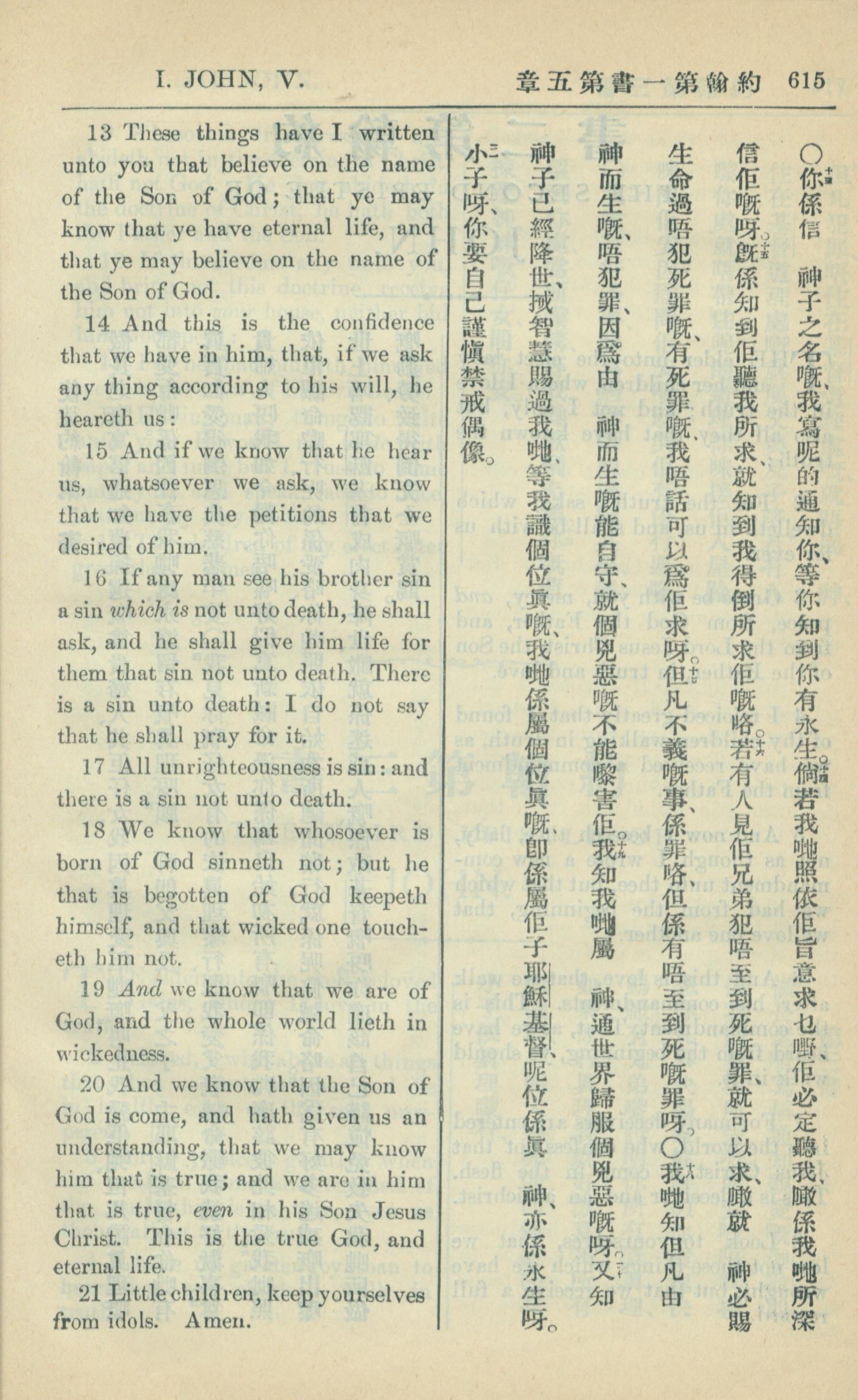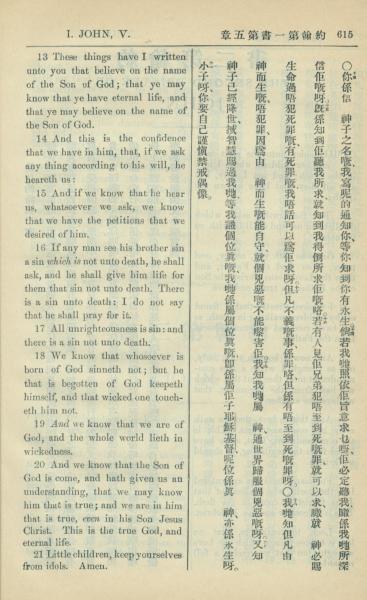 1909年中西字新约全书 约翰一书 5 章 13 节到 5 章 21 节