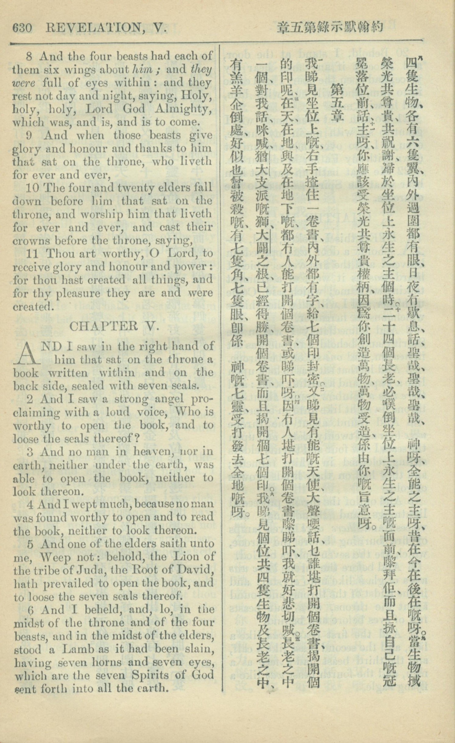 1909年中西字新约全书 启示录 4 章 8 节到 5 章 6 节