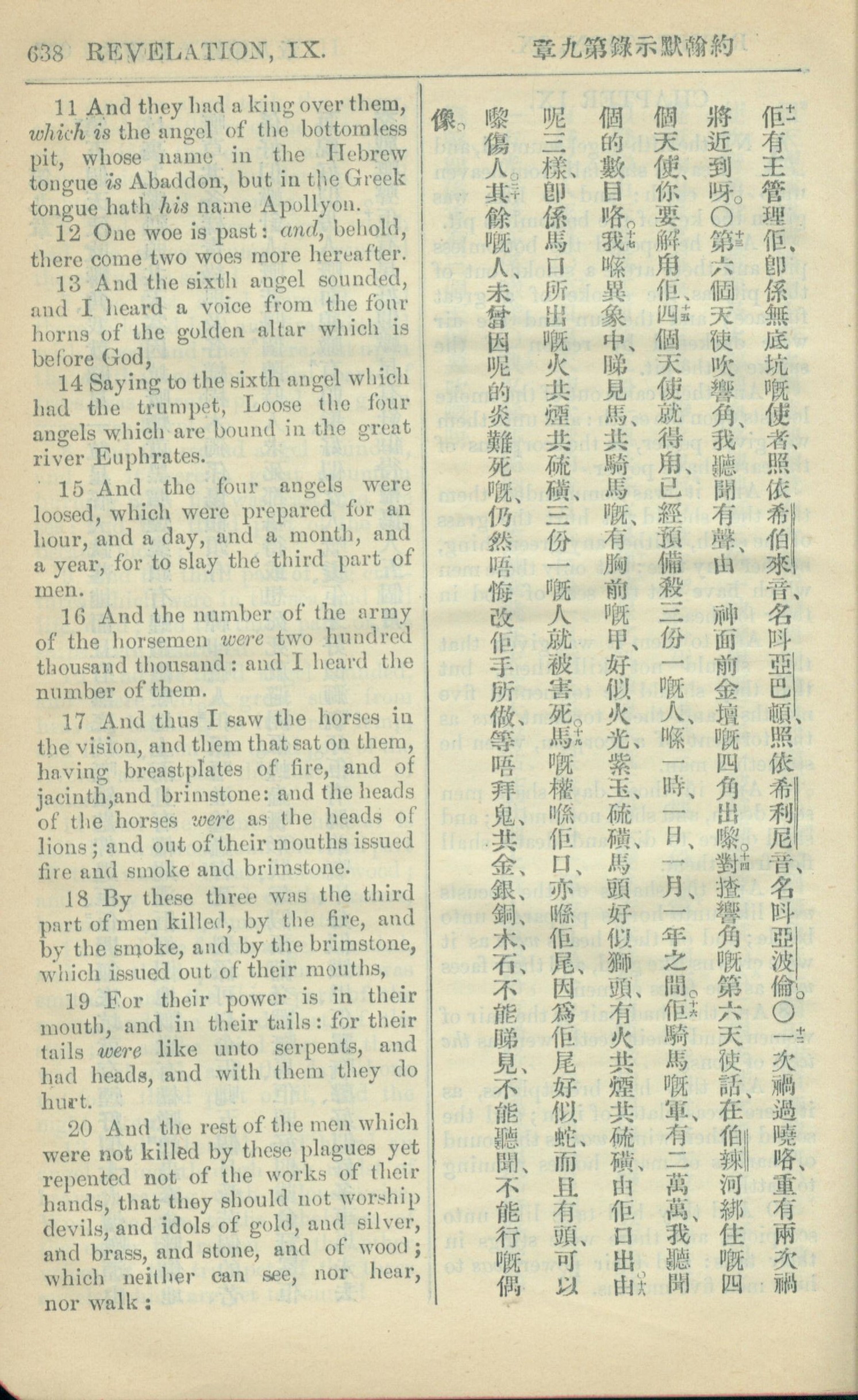 1909年中西字新约全书 启示录 9 章 11 节到 9 章 20 节
