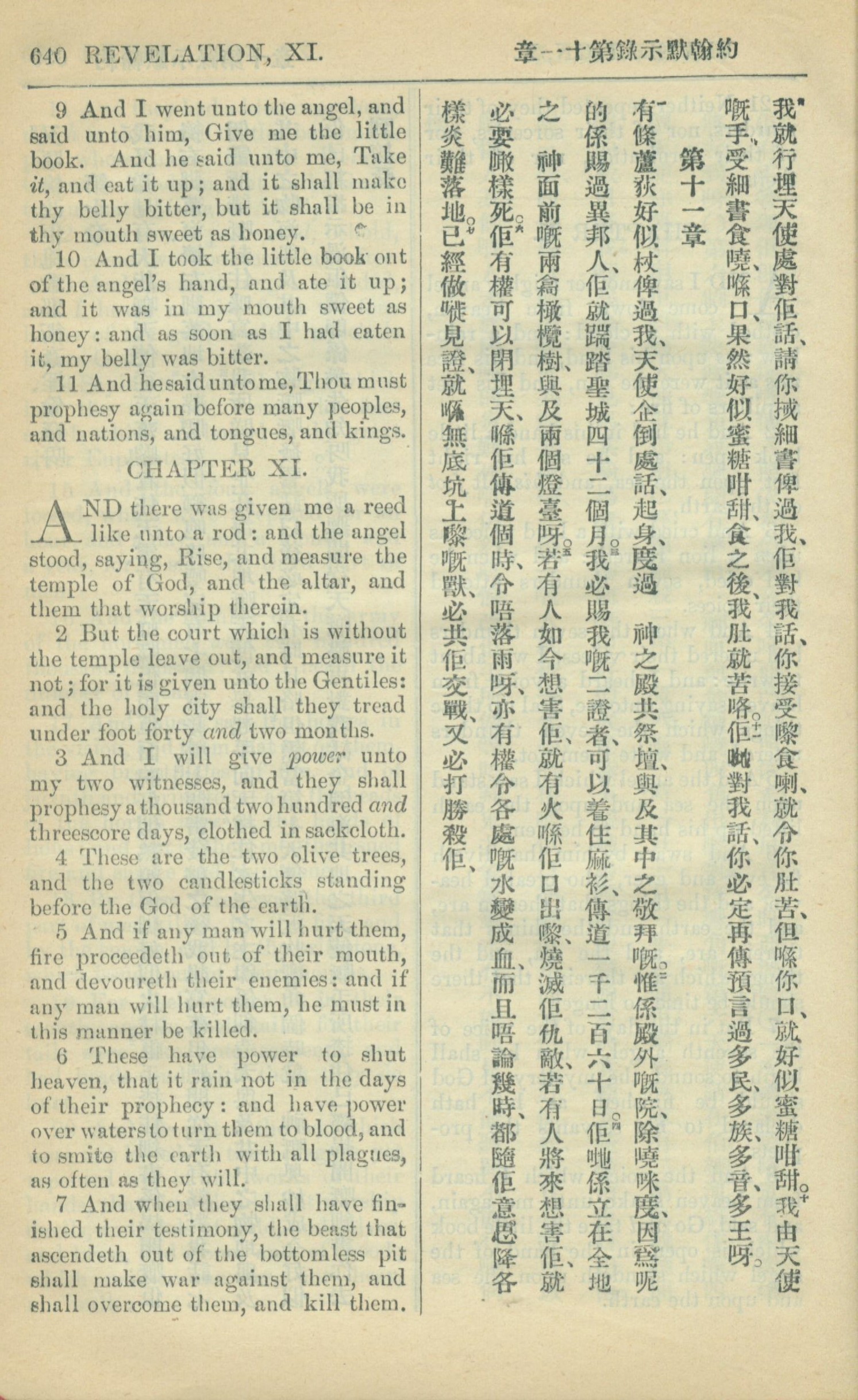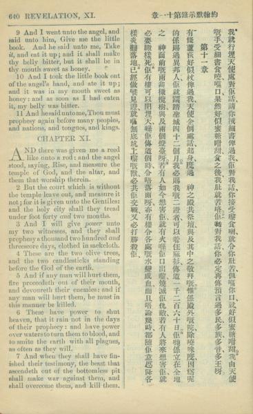 1909年中西字新约全书 启示录 10 章 9 节到 11 章 7 节
