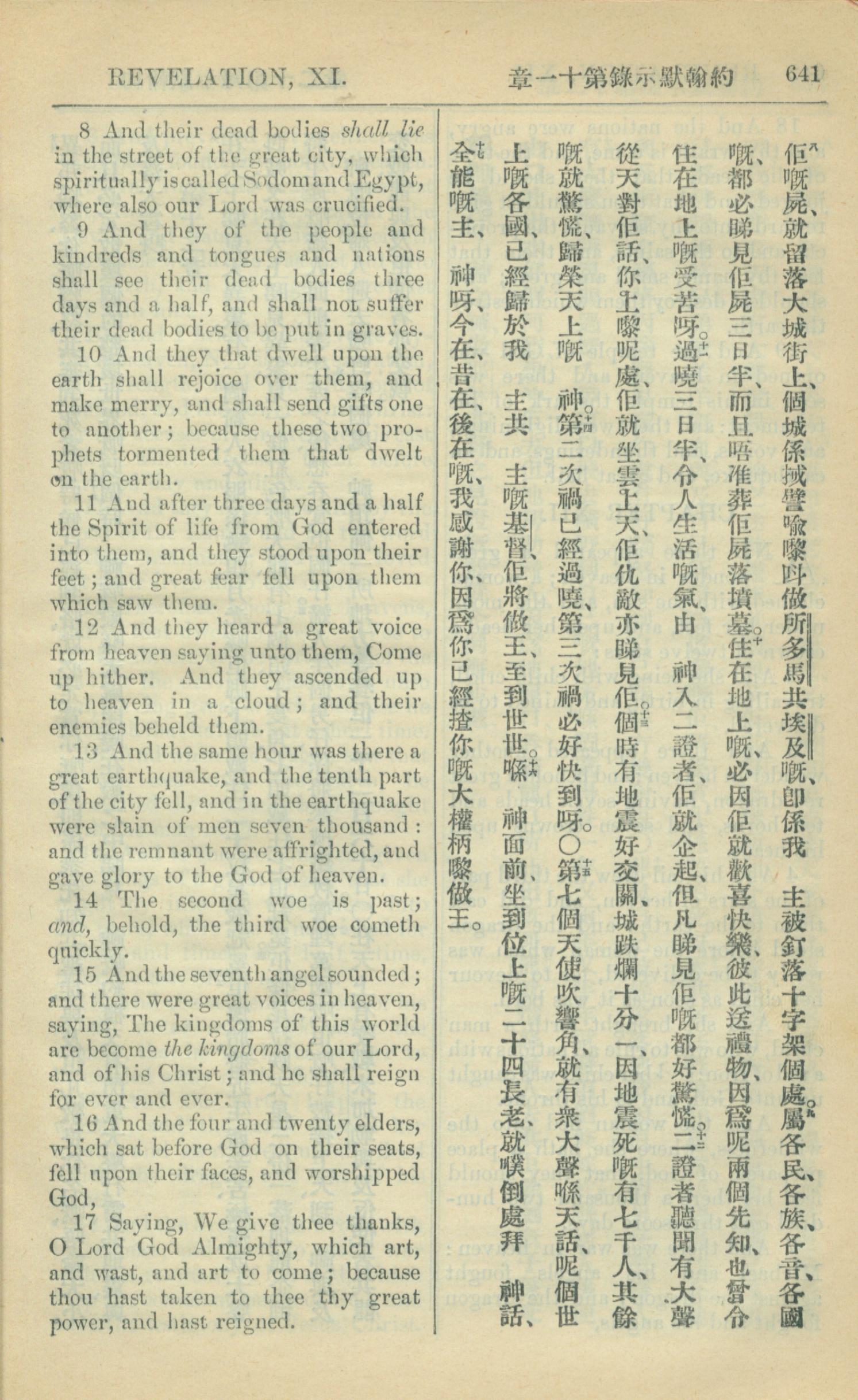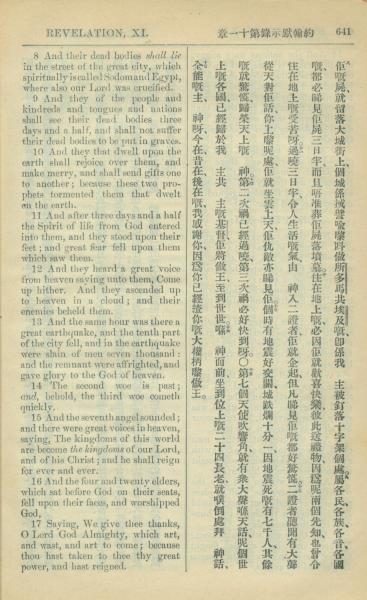 1909年中西字新约全书 启示录 11 章 8 节到 11 章 17 节