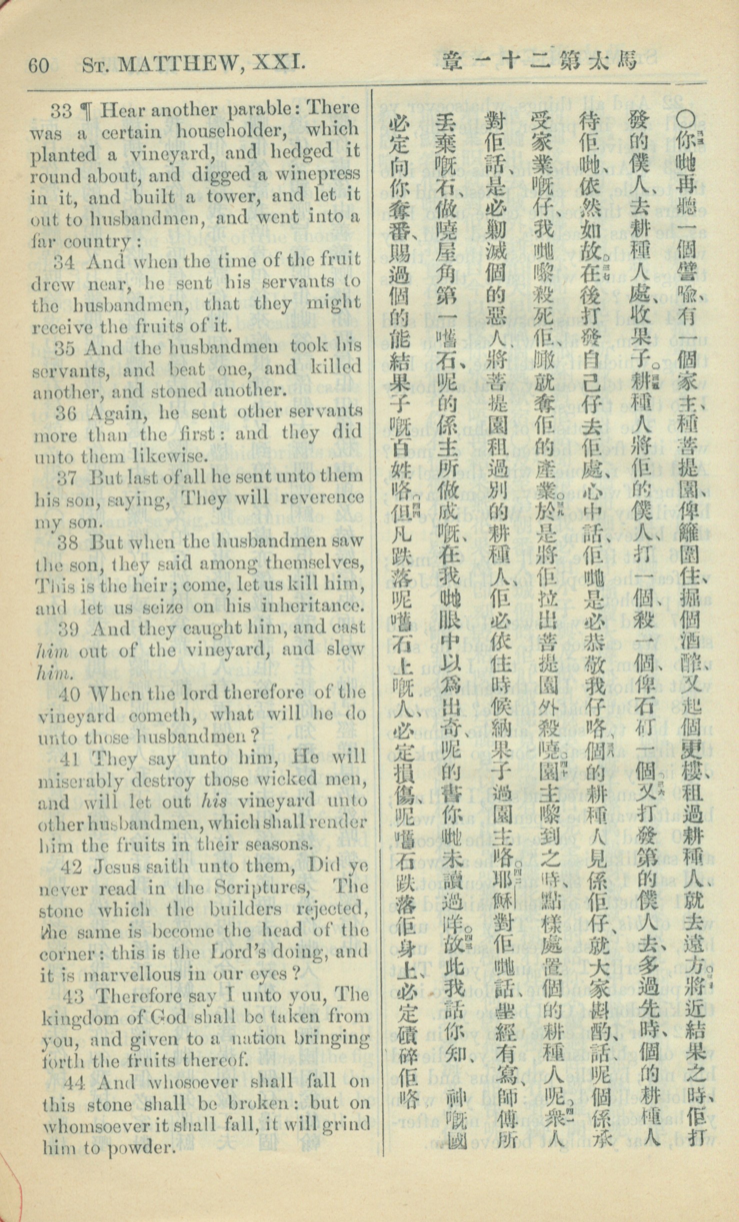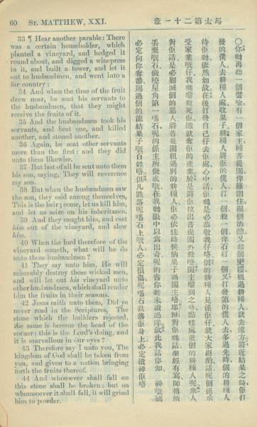 1909年中西字新约全书 马太福音 21 章 33 节到 21 章 44 节